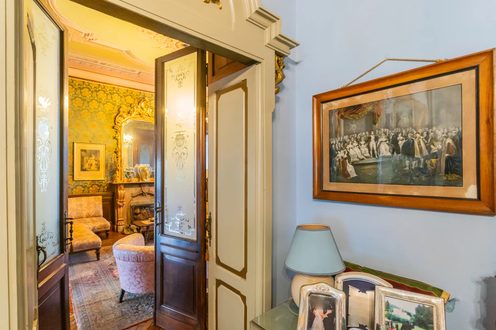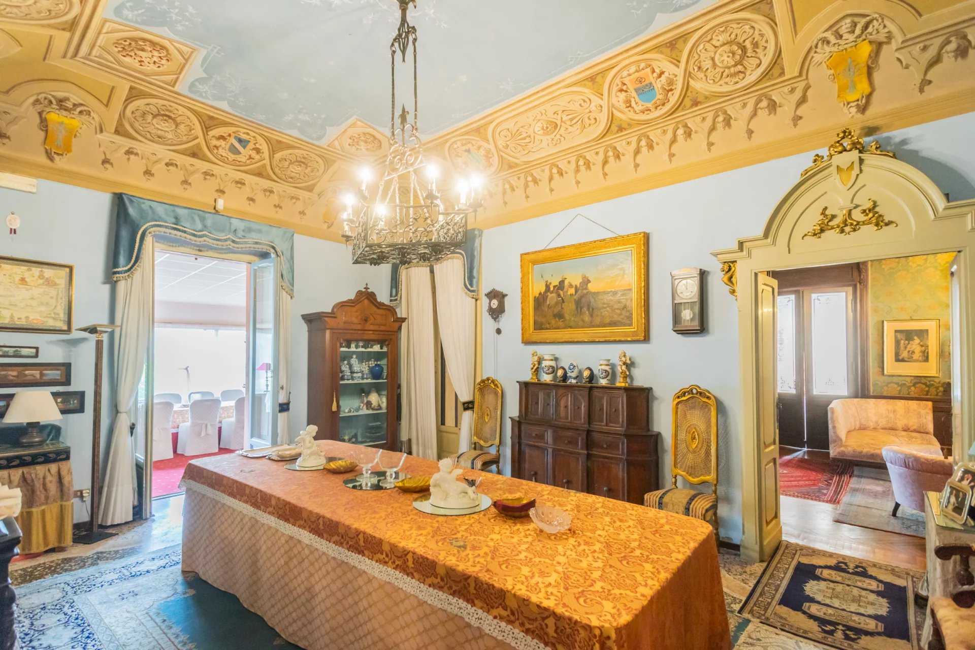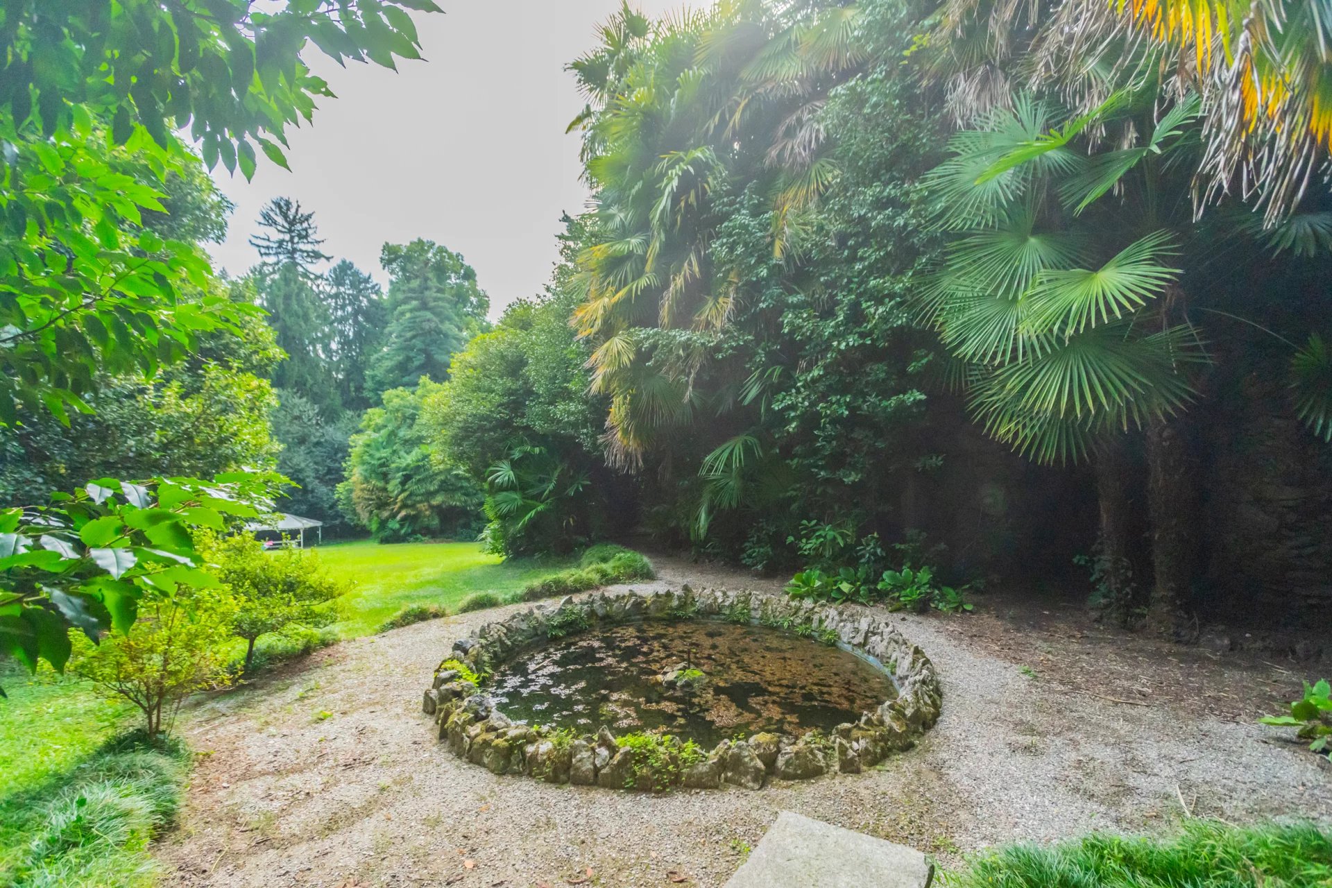 The private 1.5-hectare park is beautifully maintained, featuring century-old trees, a fountain, a water grotto, and historic greenhouses for citrus cultivation, directly connected to the main building.
