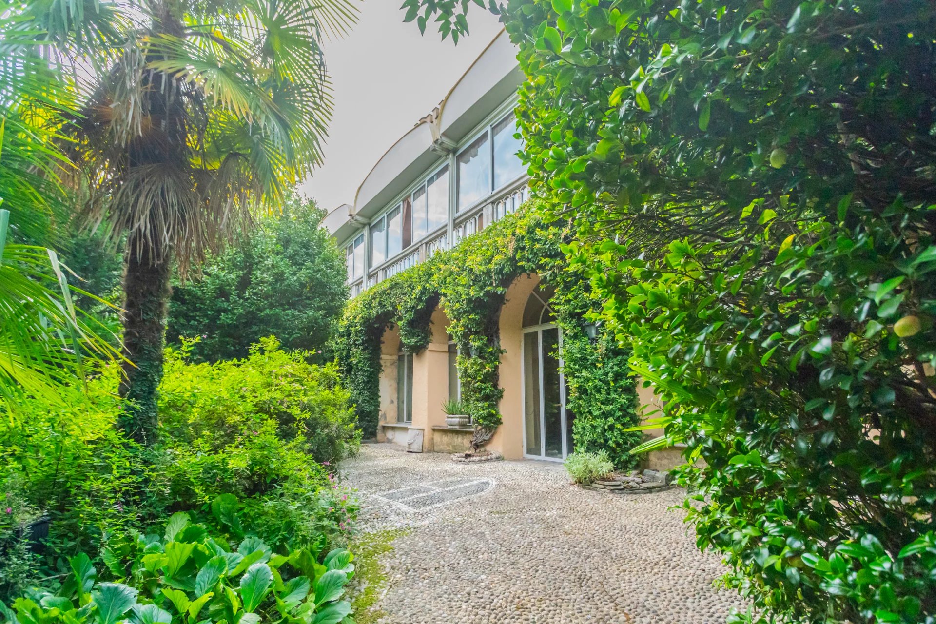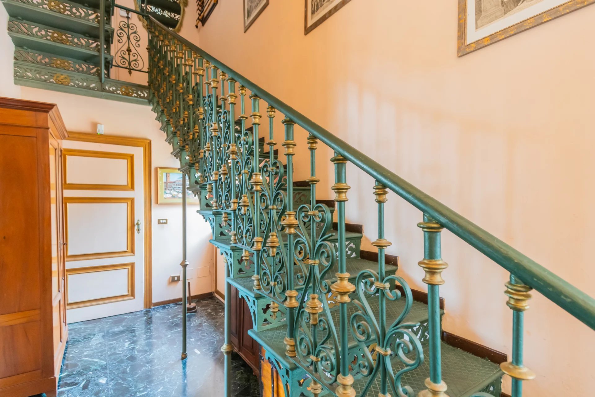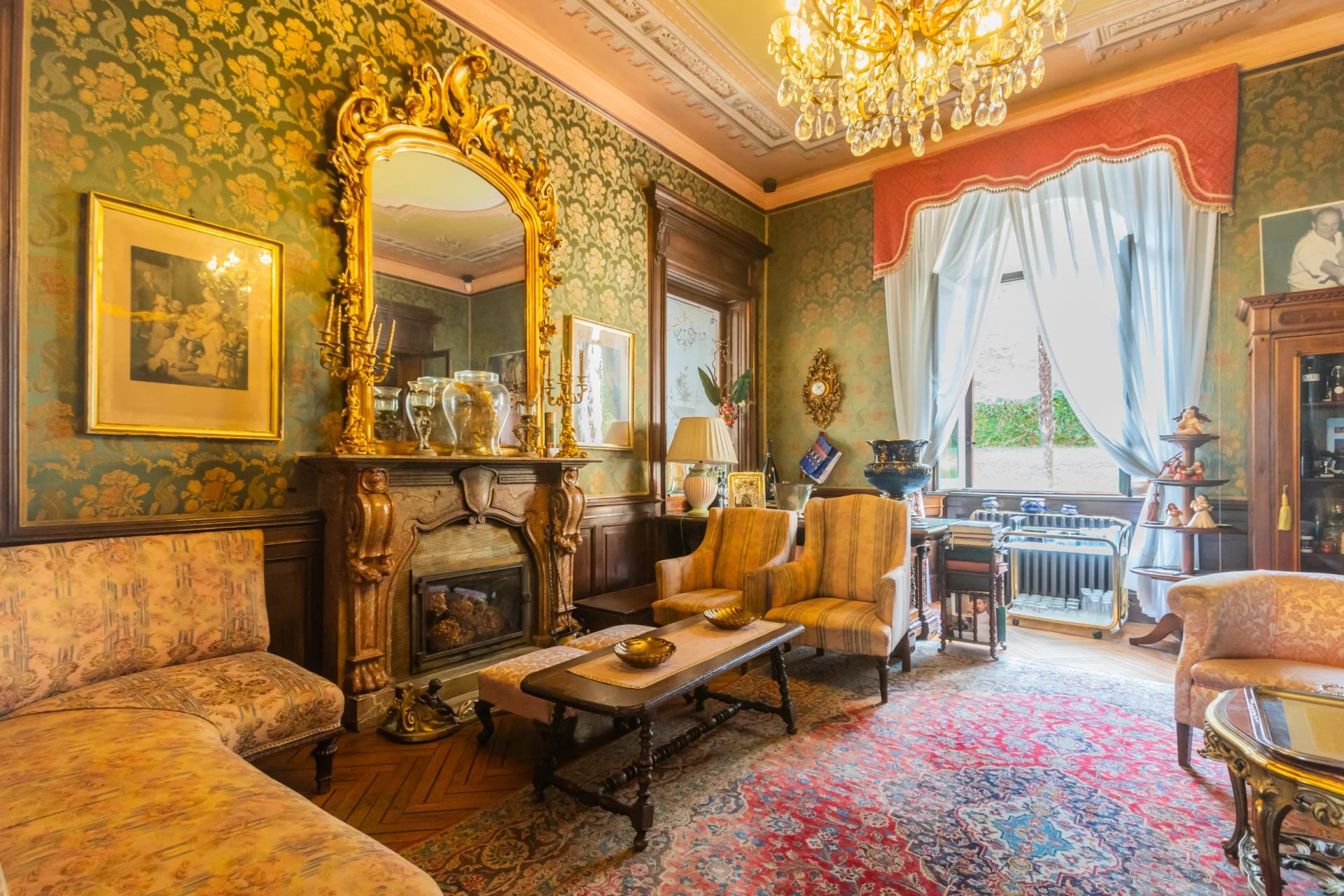 The private 1.5-hectare park is beautifully maintained, featuring century-old trees, a fountain, a water grotto, and historic greenhouses for citrus cultivation, directly connected to the main building.
