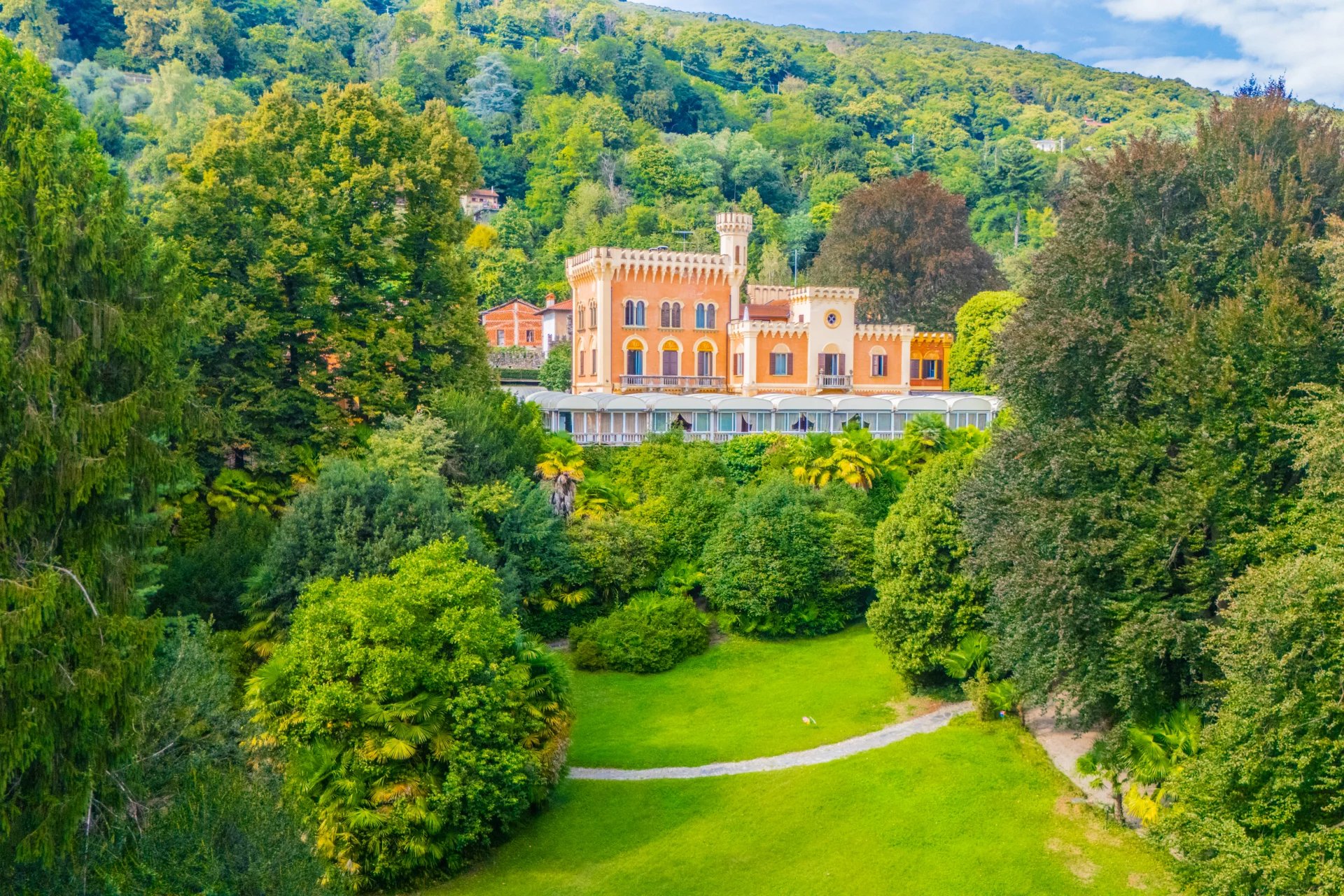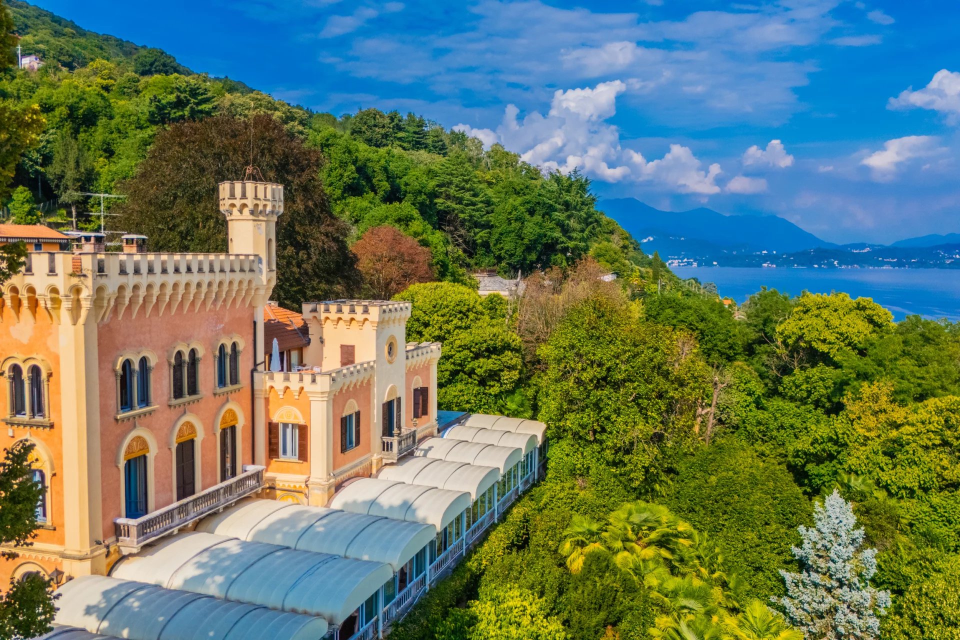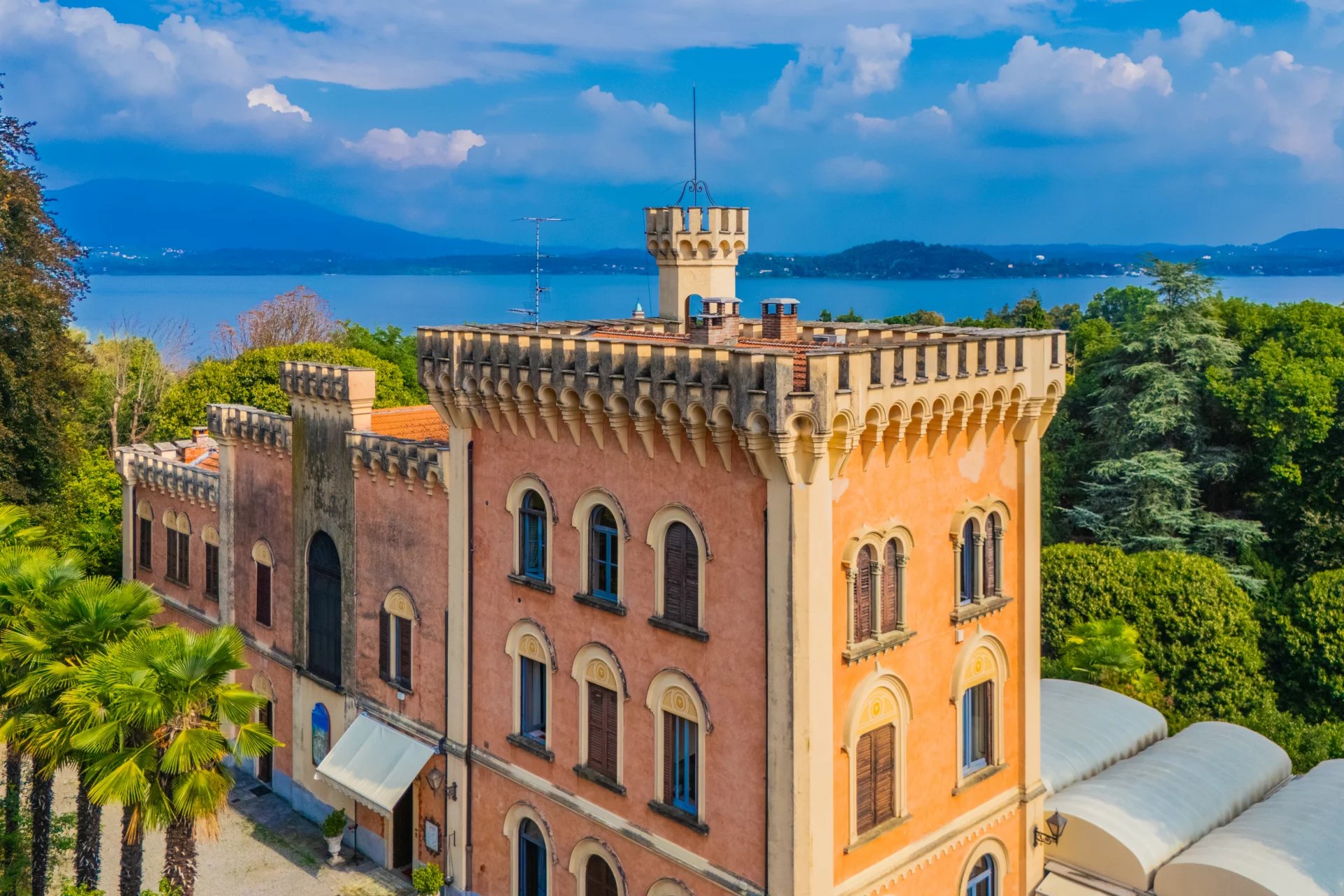 Amid the enchanting landscape of Lake Maggiore, in the elegant town of Lesa, stands a majestic historic castle, originally built in 1778 and later refined in 1880.