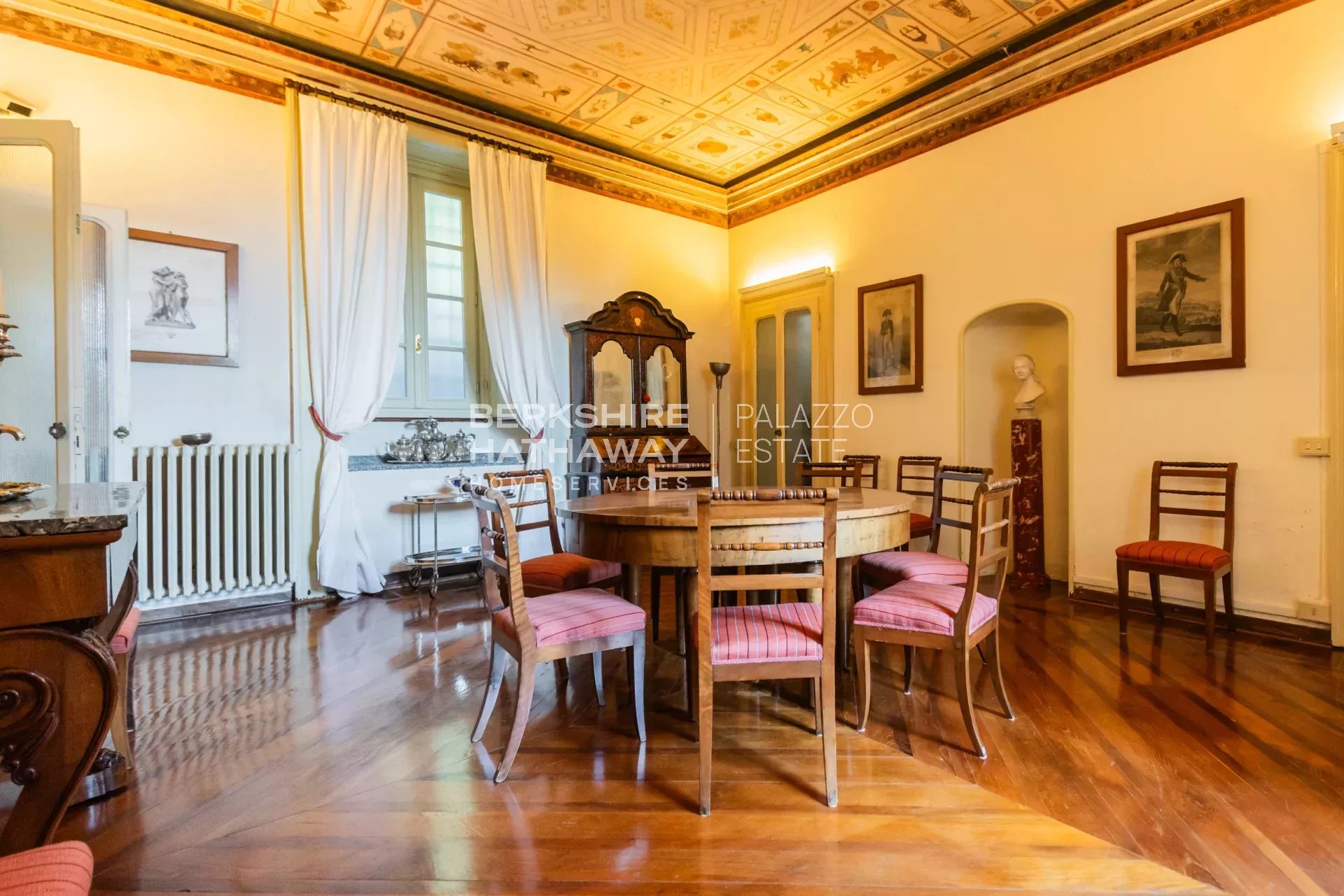 La villa si presta a interventi di ristrutturazione che, attraverso un progetto architettonico mirato, potranno restituire alla dimora il suo antico splendore. Il parco circostante, piantumato, circonda la proprietà creando un ambiente di tranquillità, mentre l’area piscina si inserisce in una zona riservata del giardino. L’ingresso alla proprietà è reso scenografico da un cancello automatico che apre su una maestosa strada carrabile, immersa tra gli alberi secolari del parco circostante.