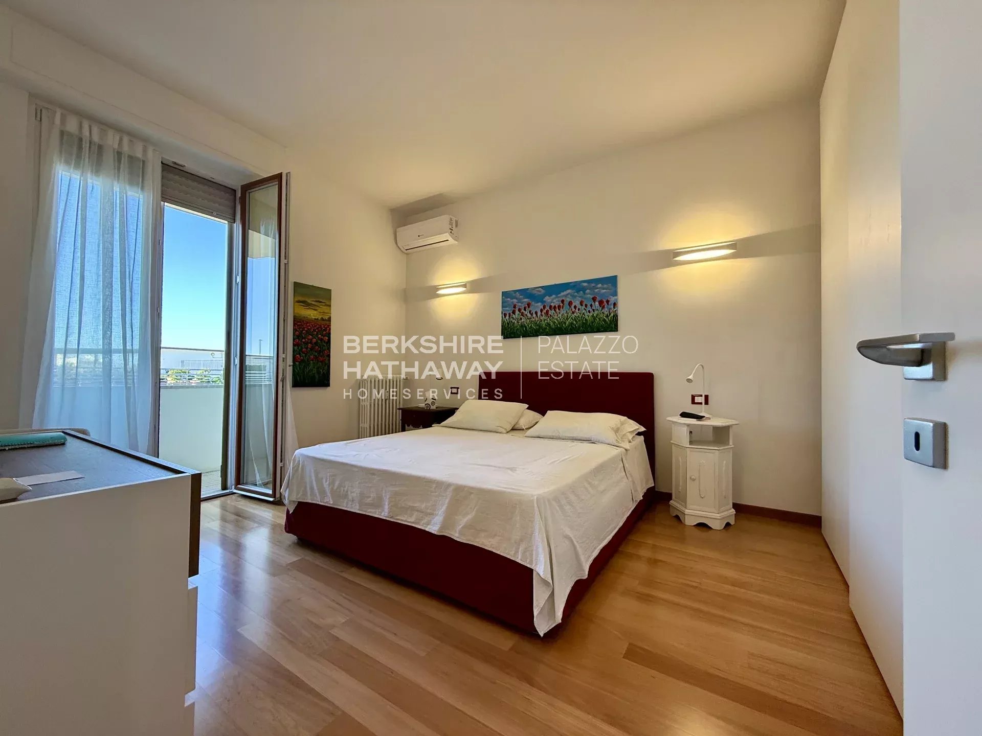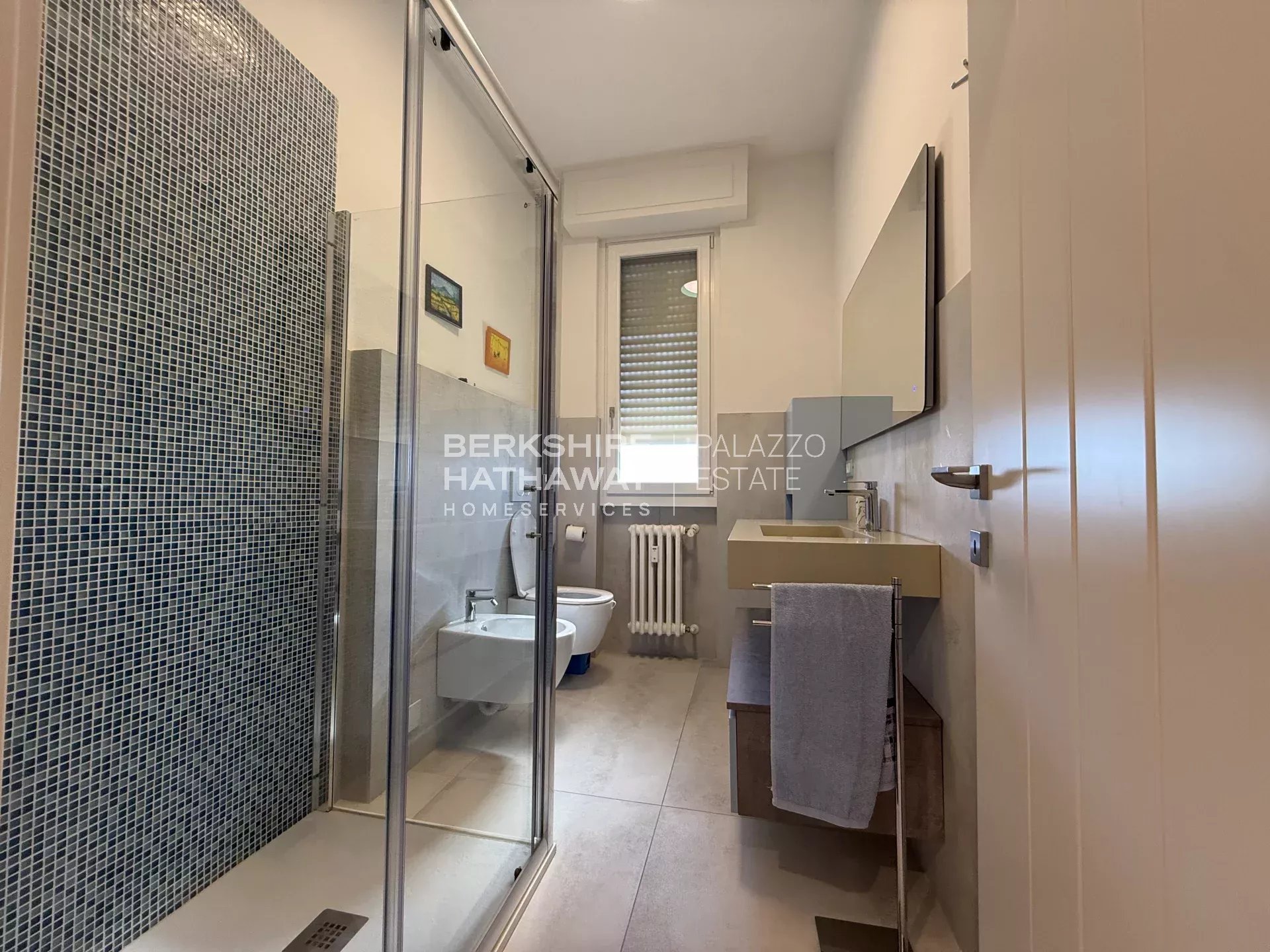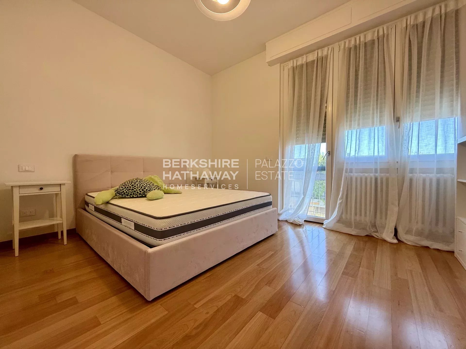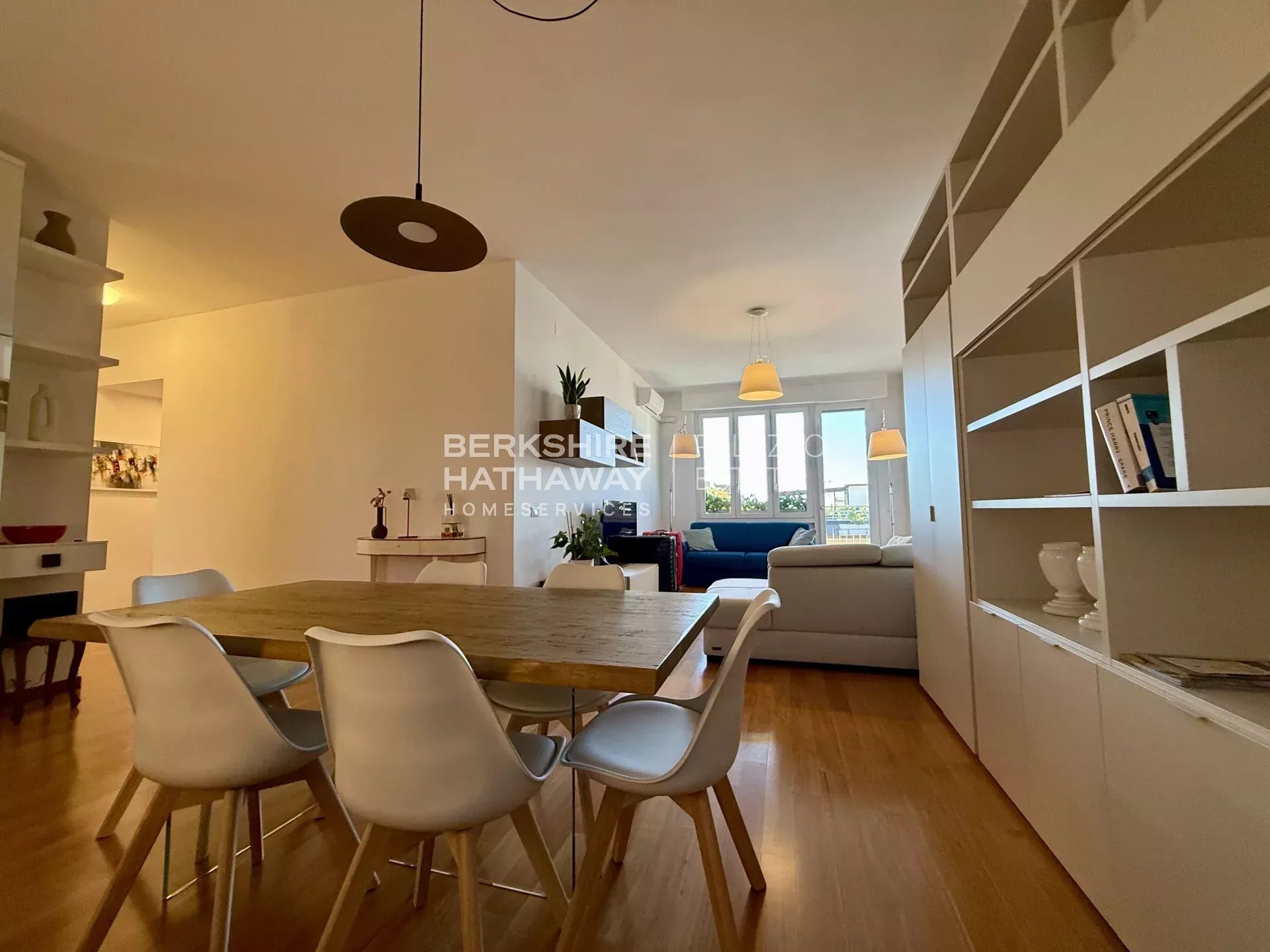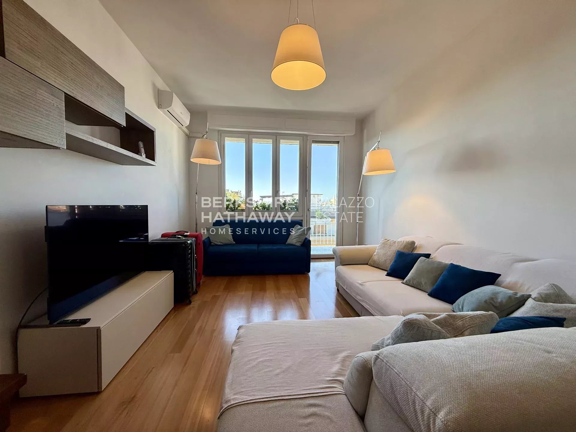 L’immobile, recentemente ristrutturato con finiture di pregio, è completamente arredato con mobili moderni di alta qualità (tra cui arredi Flou), ed è composto da un ampio soggiorno con zona pranzo, cucina abitabile, due camere matrimoniali, doppi servizi, un pratico vano di servizio e una terza camerina ricavata in modo discreto e funzionale dietro la libreria del soggiorno.