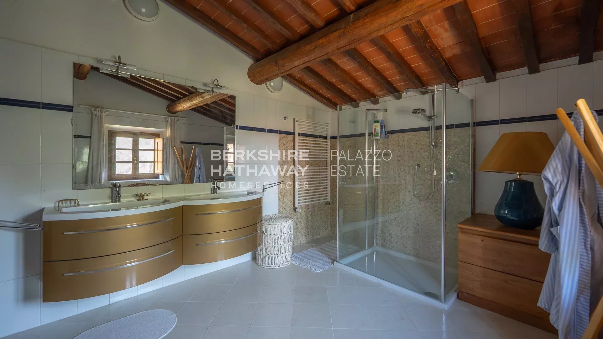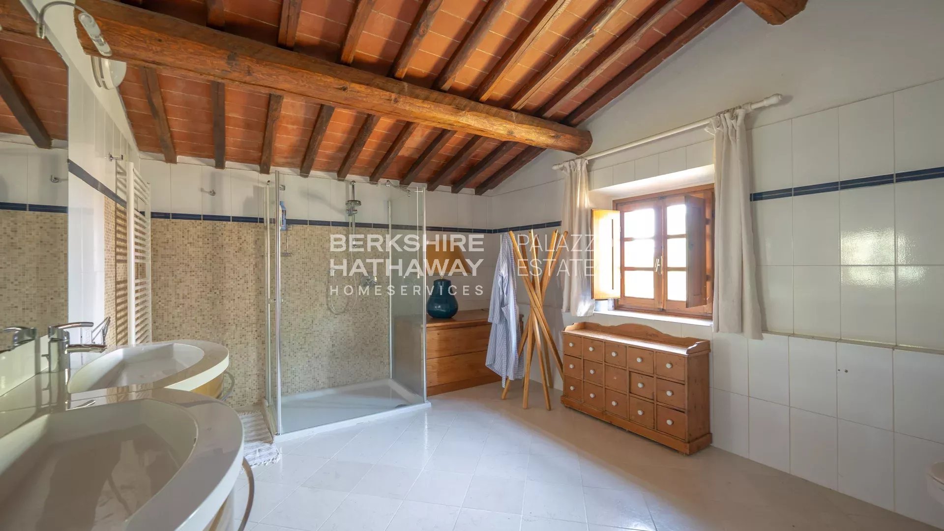 La proprietà è circondata da circa 9,5 ettari di terreno, in parte coltivati a uliveto (circa 800 piante) e un ettaro di vigneto, offrendo così un perfetto equilibrio tra comfort, natura e produzione agricola.