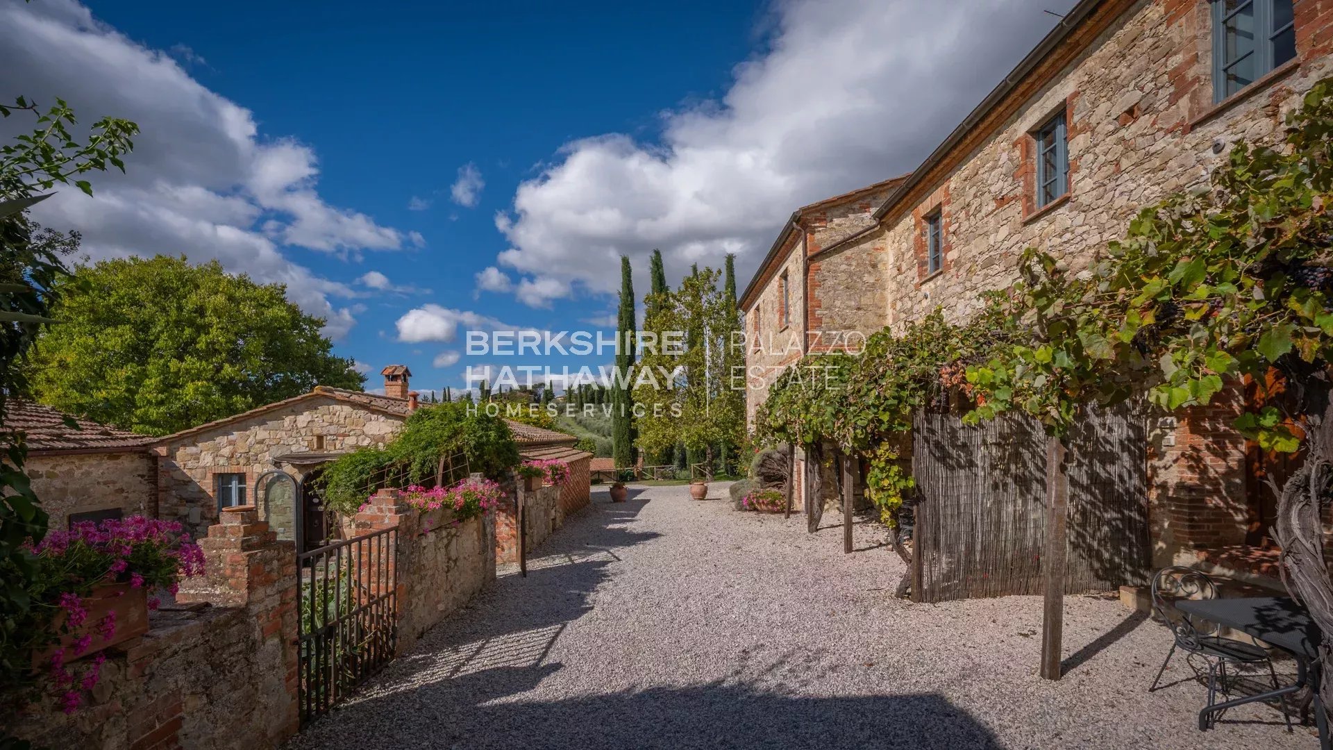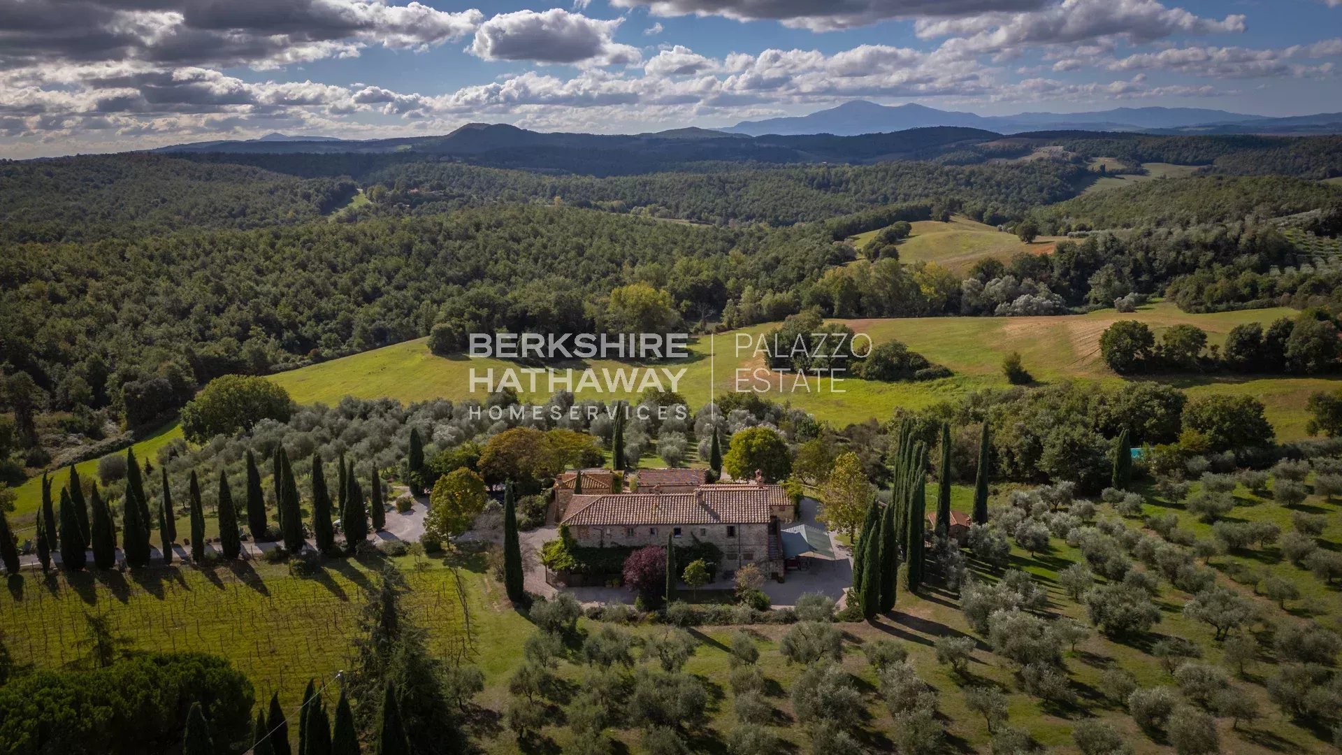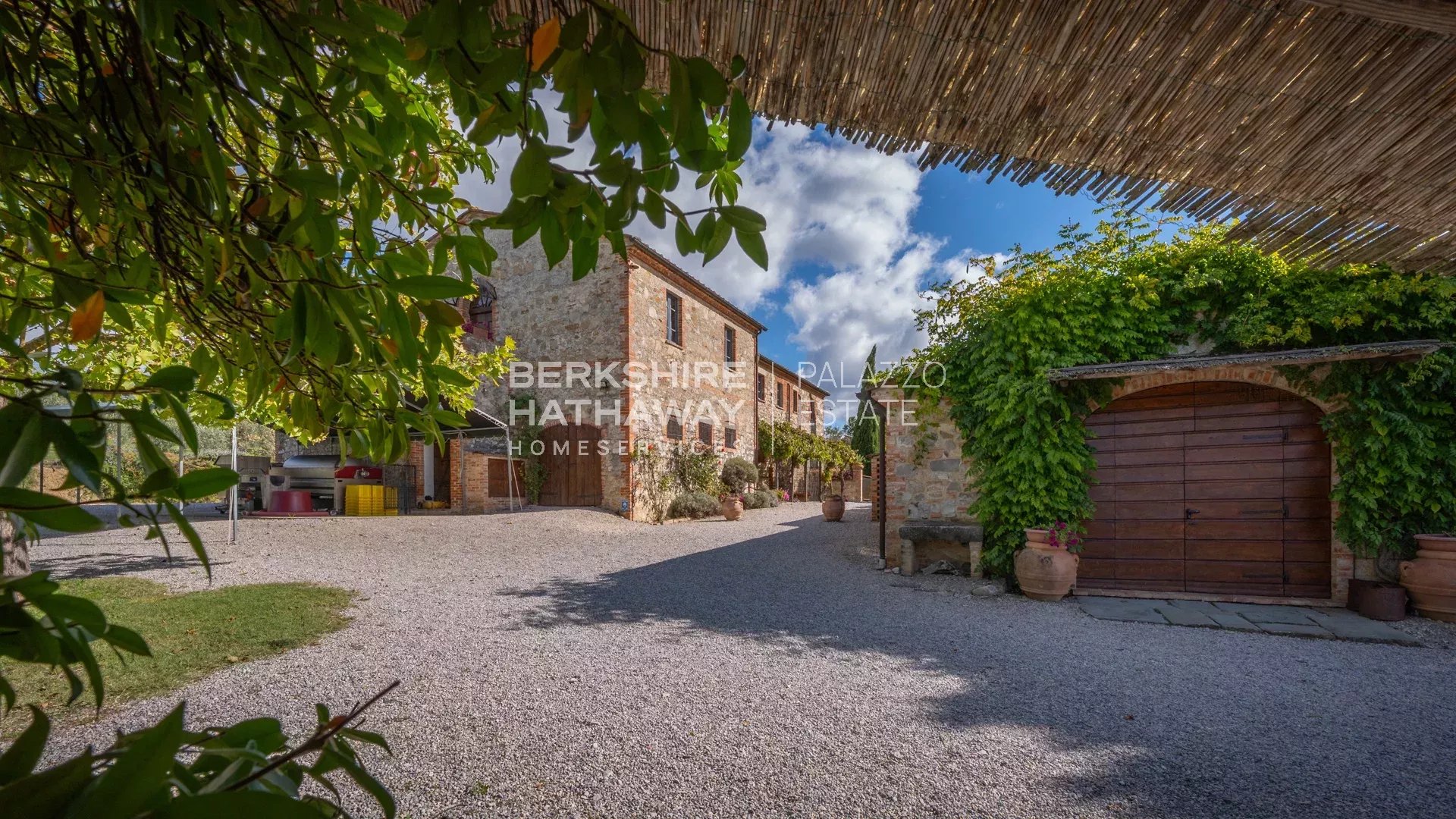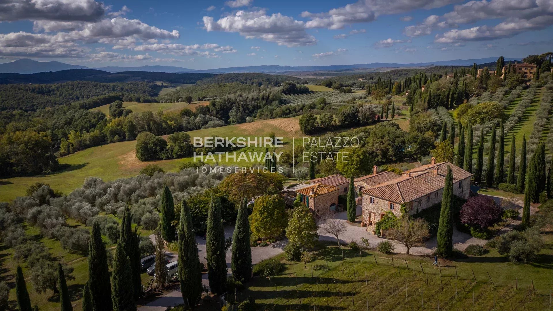 La proprietà si sviluppa su una superficie interna di circa 800 mq, circondata da 9 ettari di terreno privato, che includono 4,5 ettari di vigneti e un uliveto di circa 3 ettari.