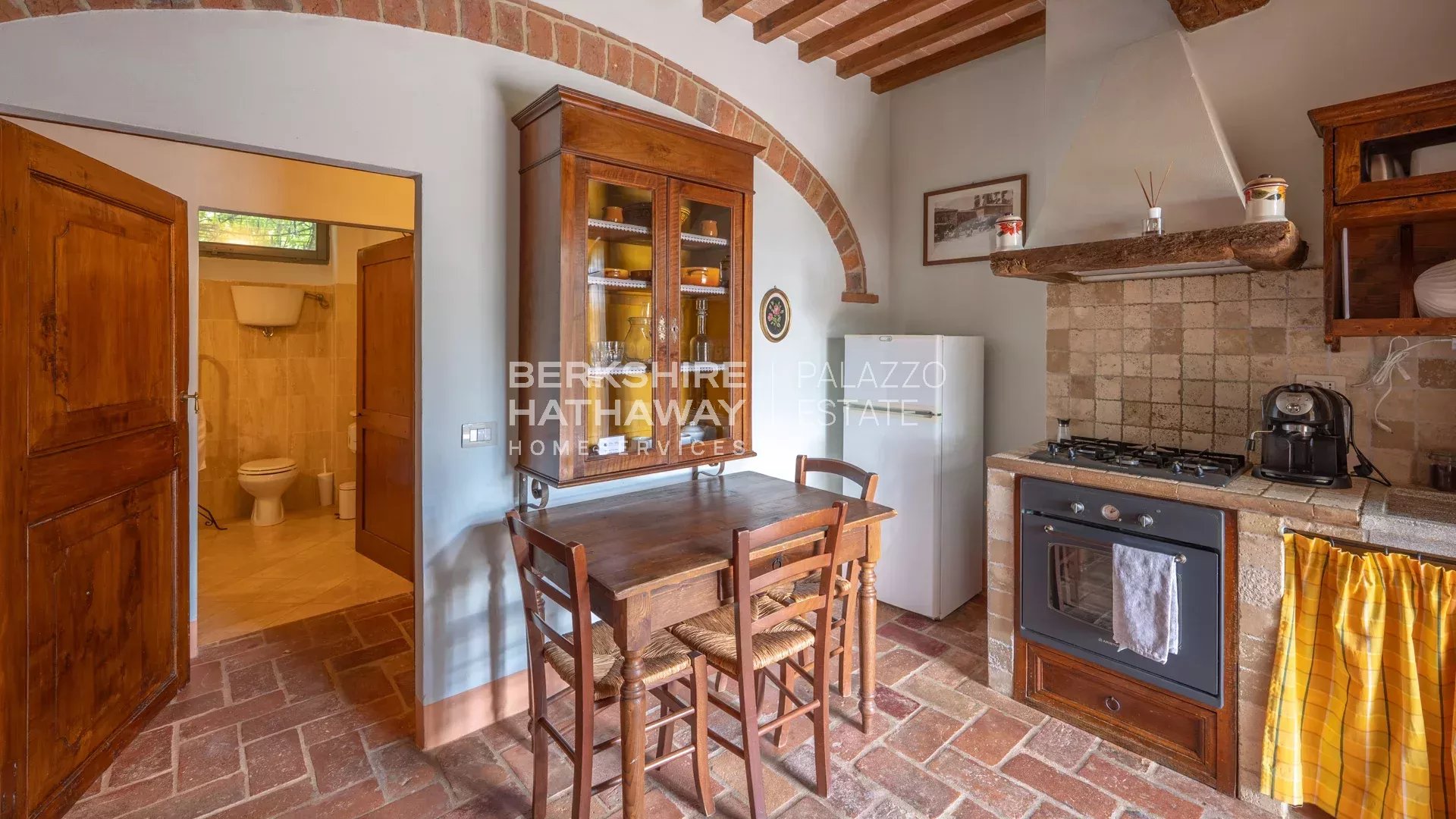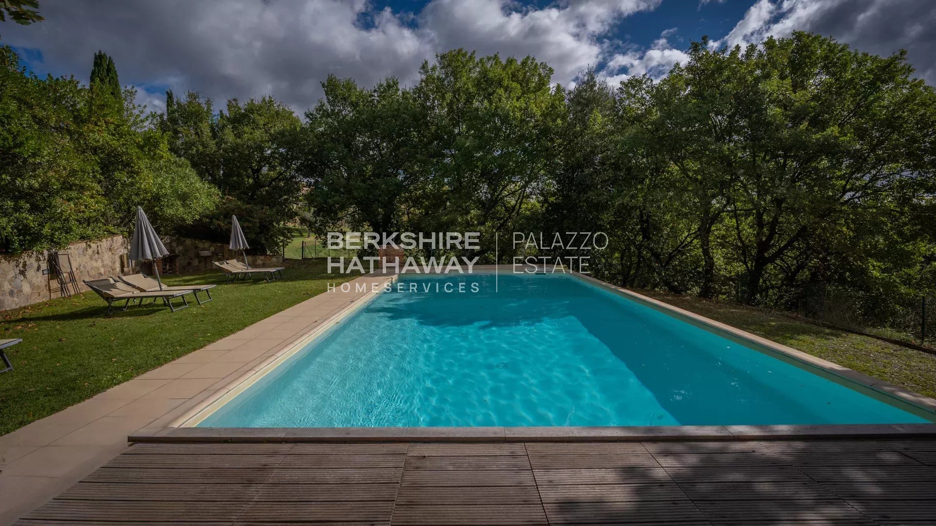 Gli interni, ampi e luminosi, riflettono l’eleganza autentica della tradizione toscana, mentre all’esterno una splendida piscina panoramica si affaccia sulle colline circostanti, offrendo un angolo di pace e relax in un contesto naturale impareggiabile.