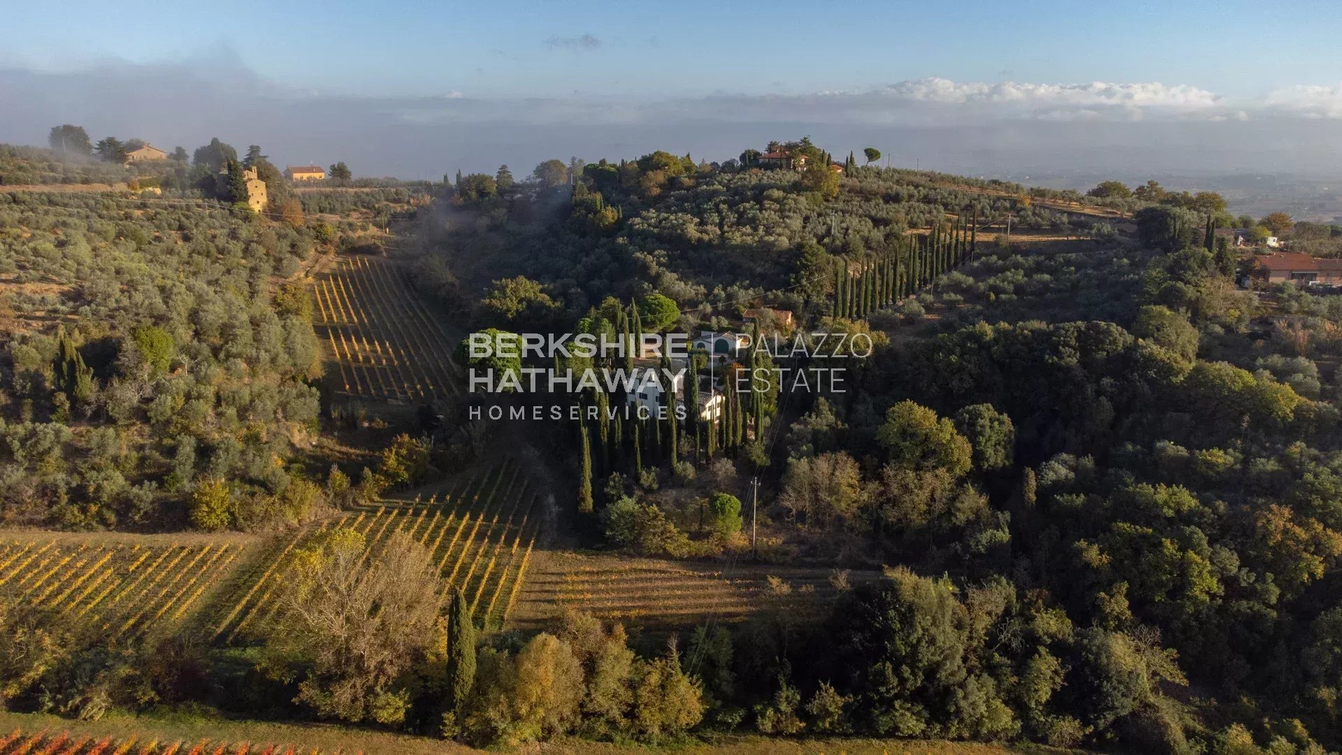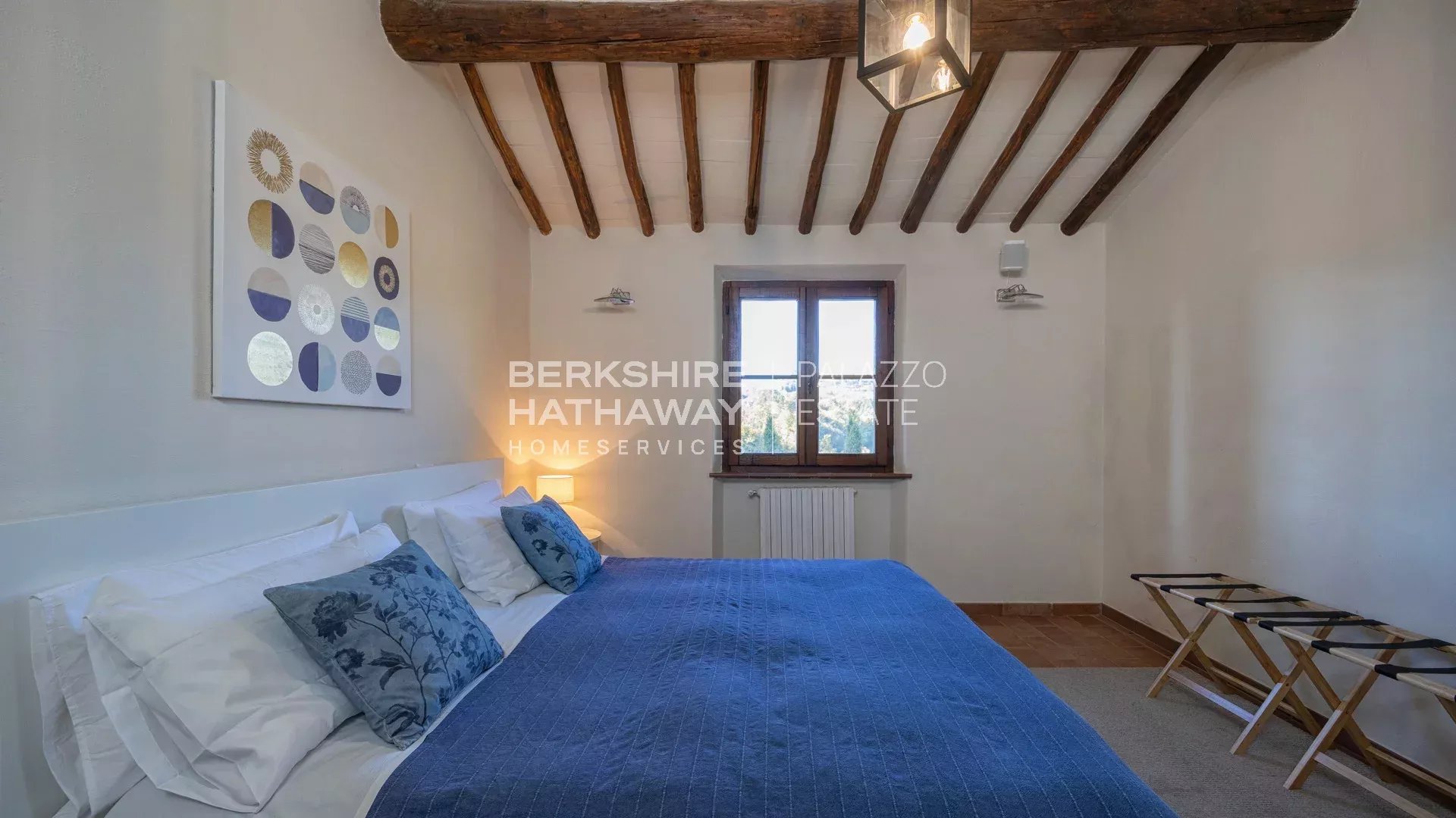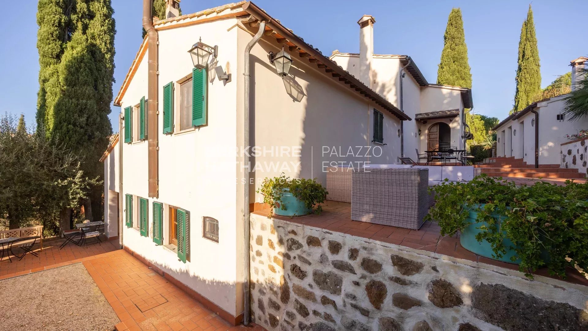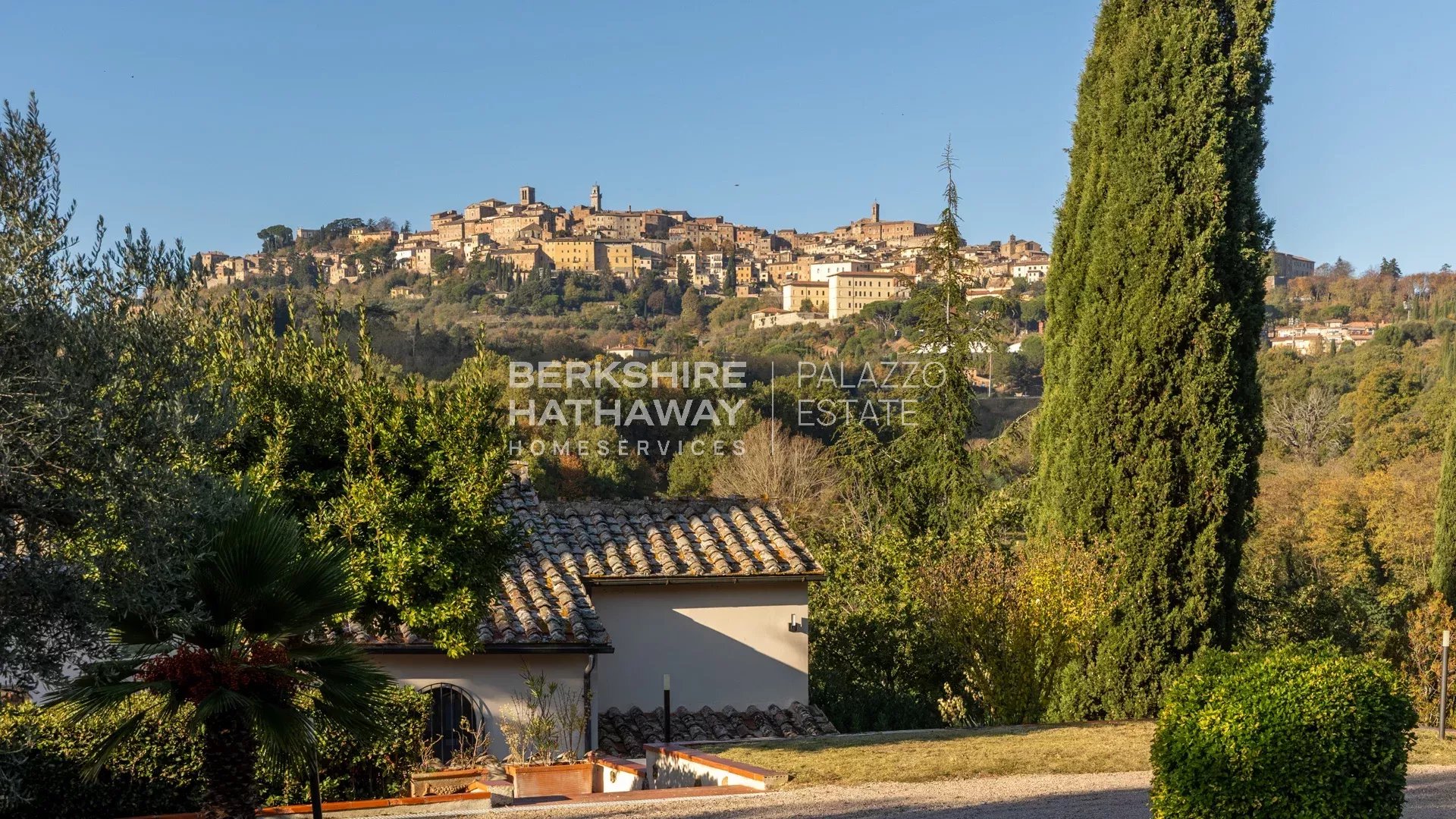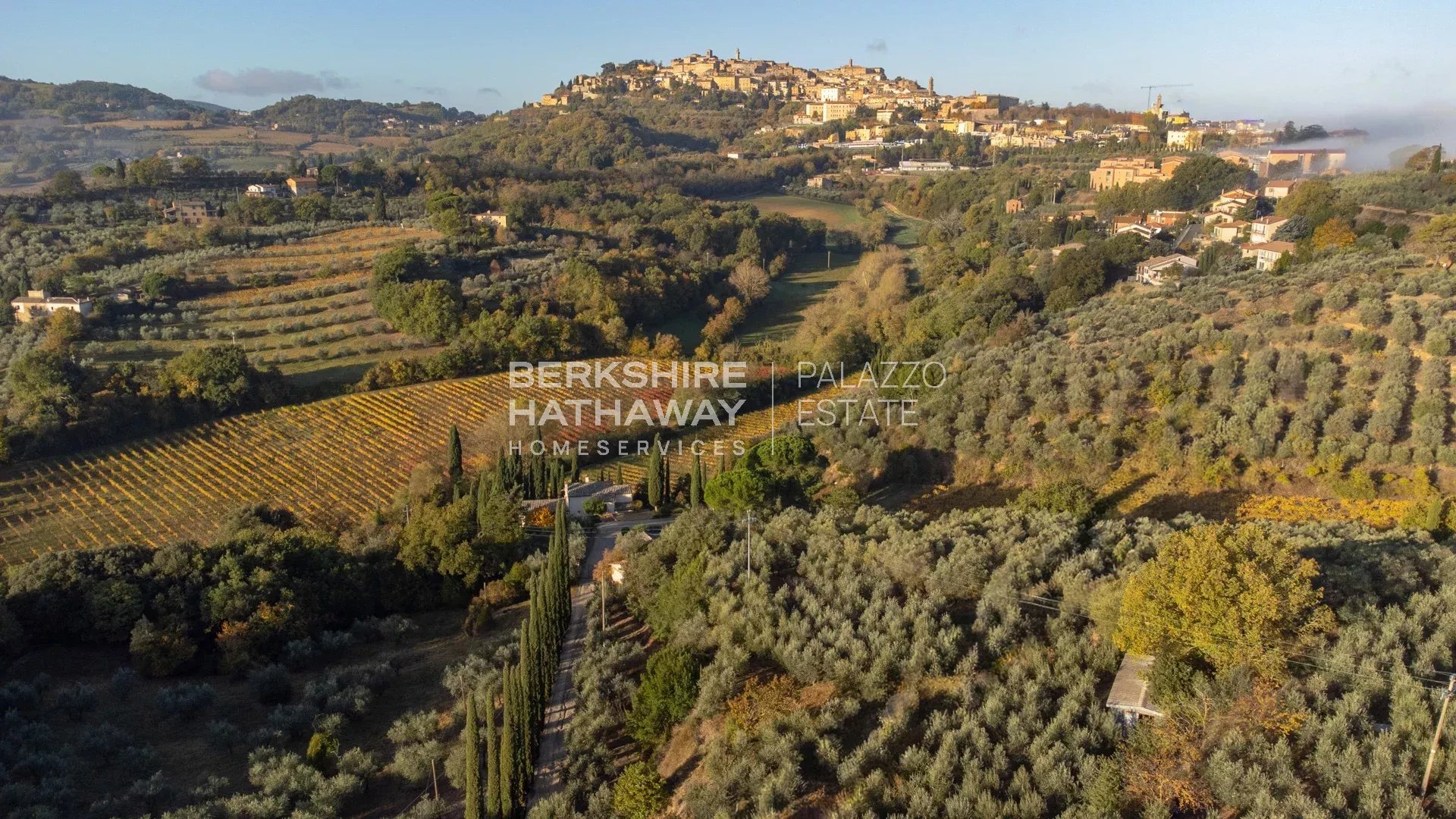 Questa splendida dimora, raggiungibile attraverso una suggestiva breve strada bianca incorniciata dai tipici cipressi toscani, vanta una posizione dominante e molto panoramica con una magnifica vista su Montepulciano.