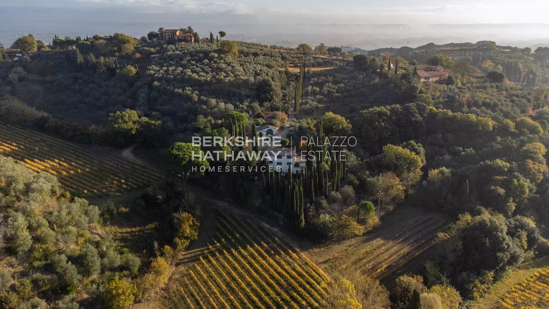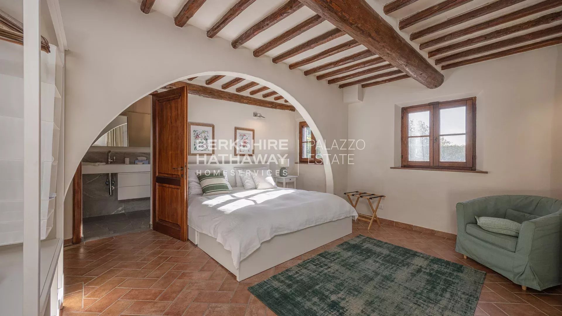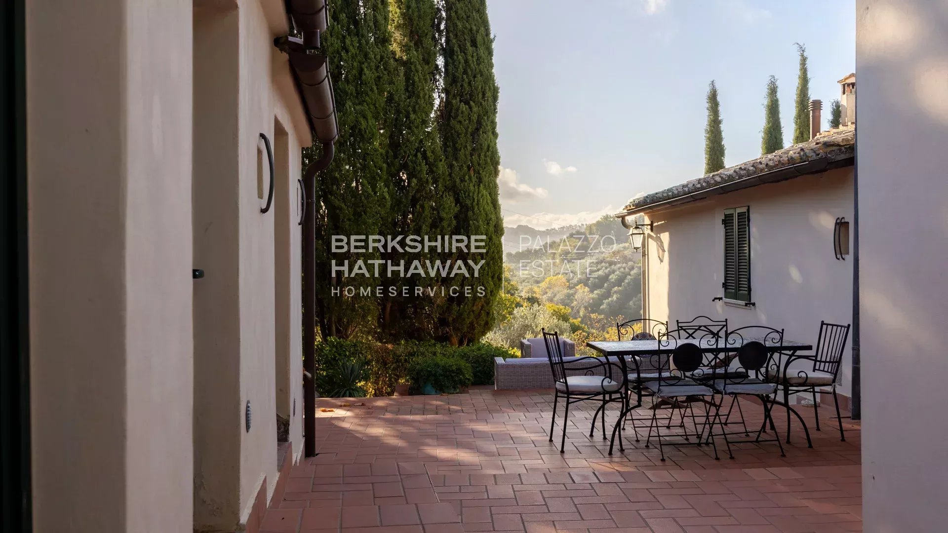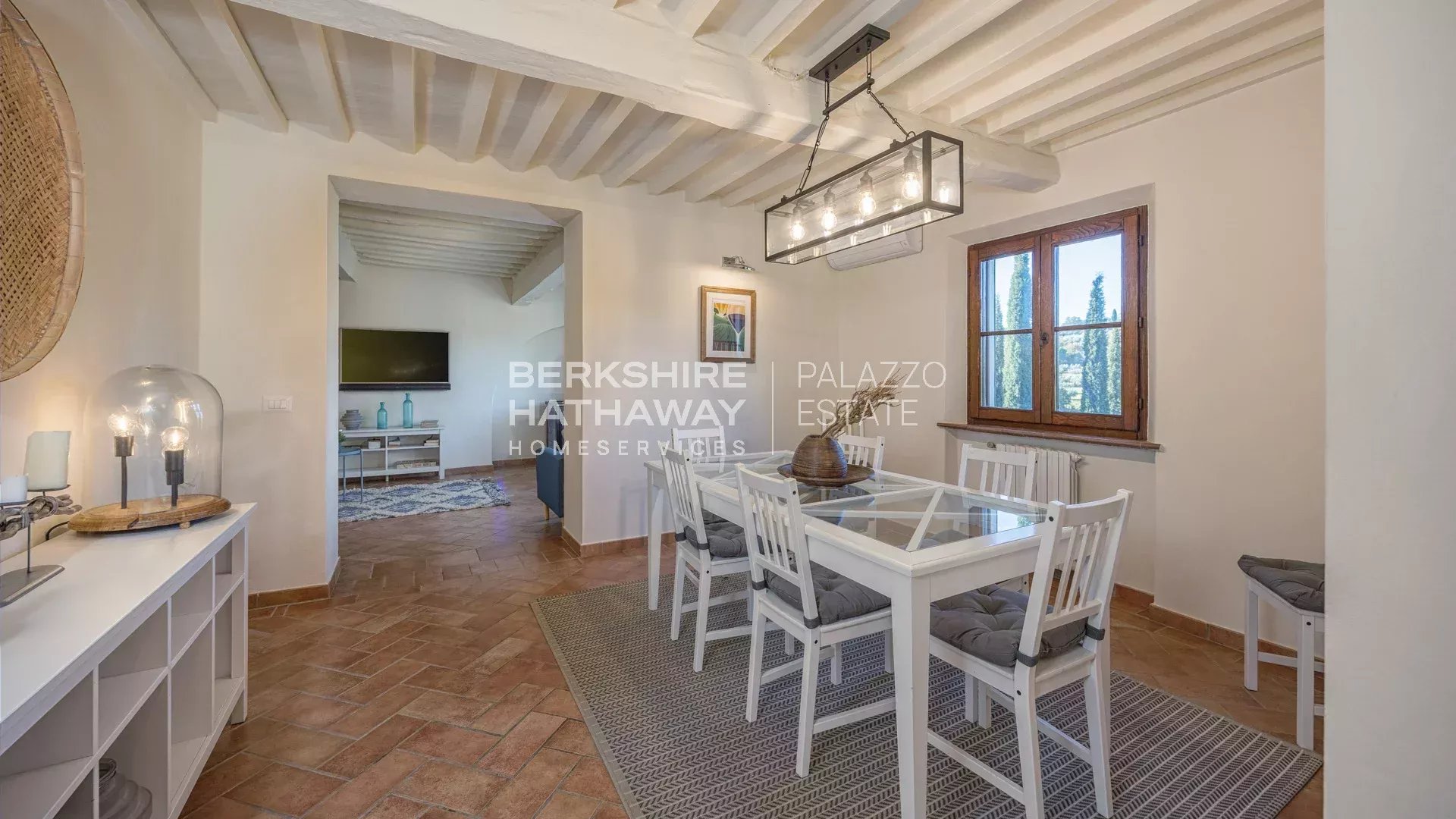 Questa splendida dimora, raggiungibile attraverso una suggestiva breve strada bianca incorniciata dai tipici cipressi toscani, vanta una posizione dominante e molto panoramica con una magnifica vista su Montepulciano.