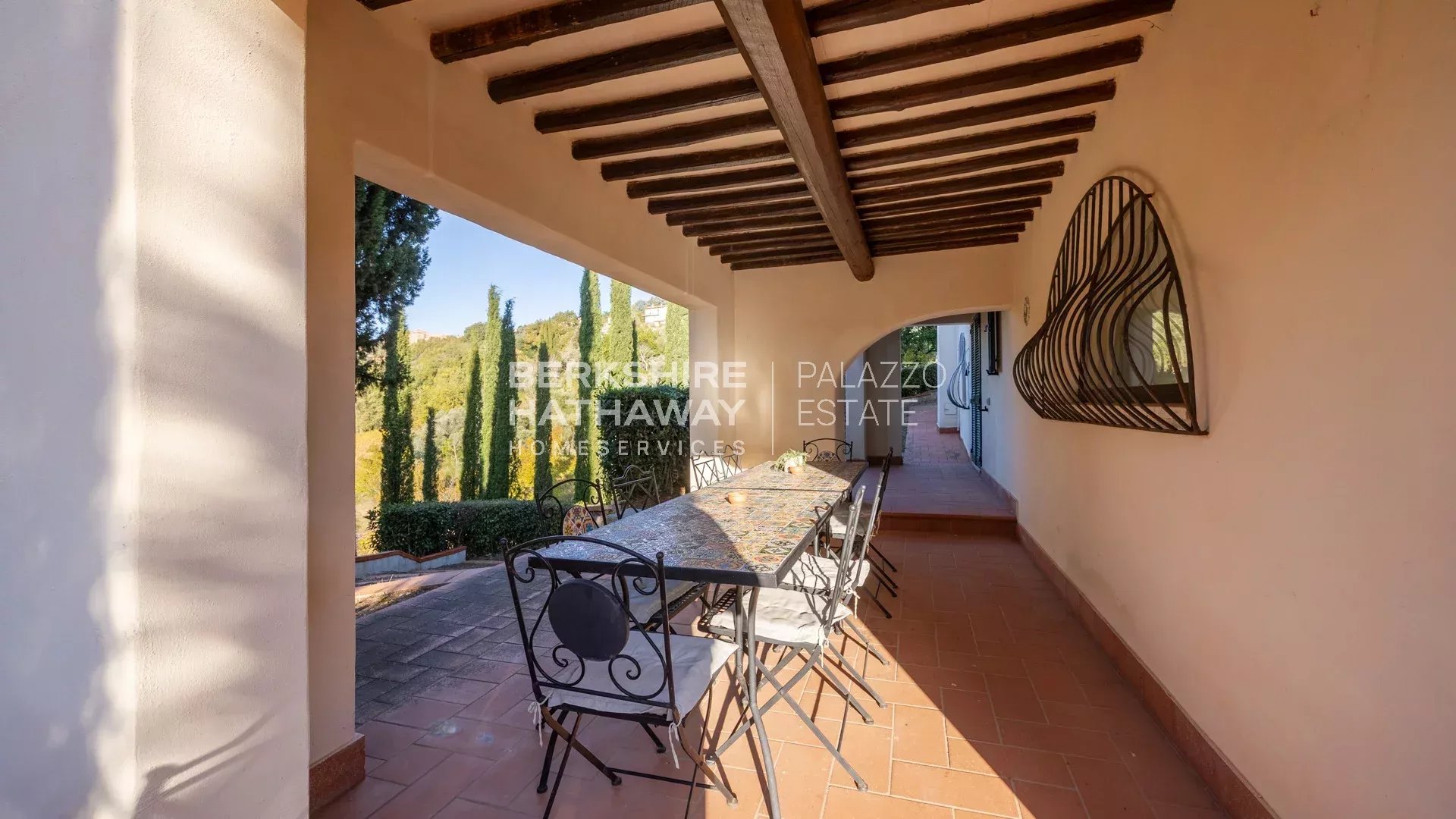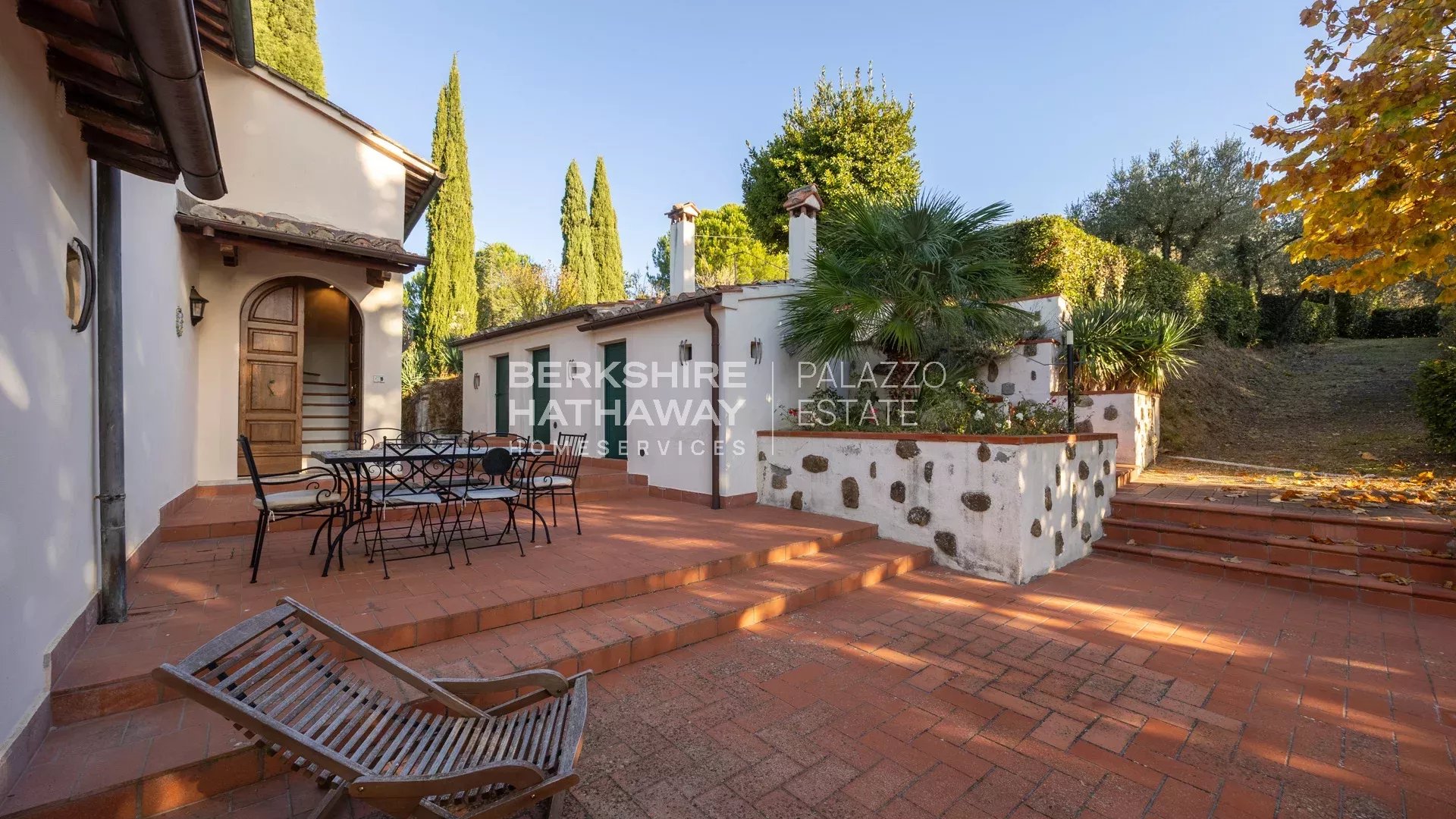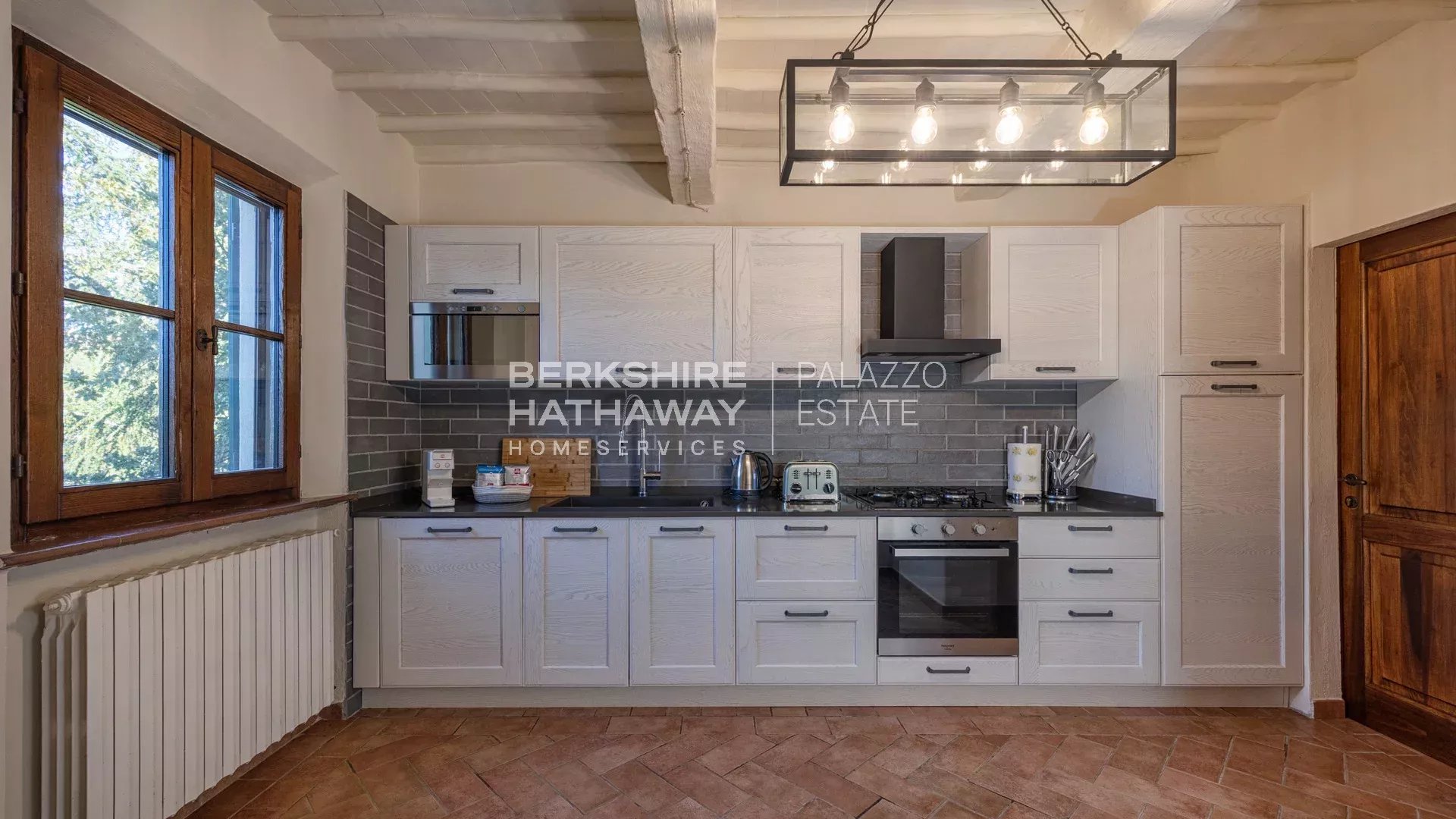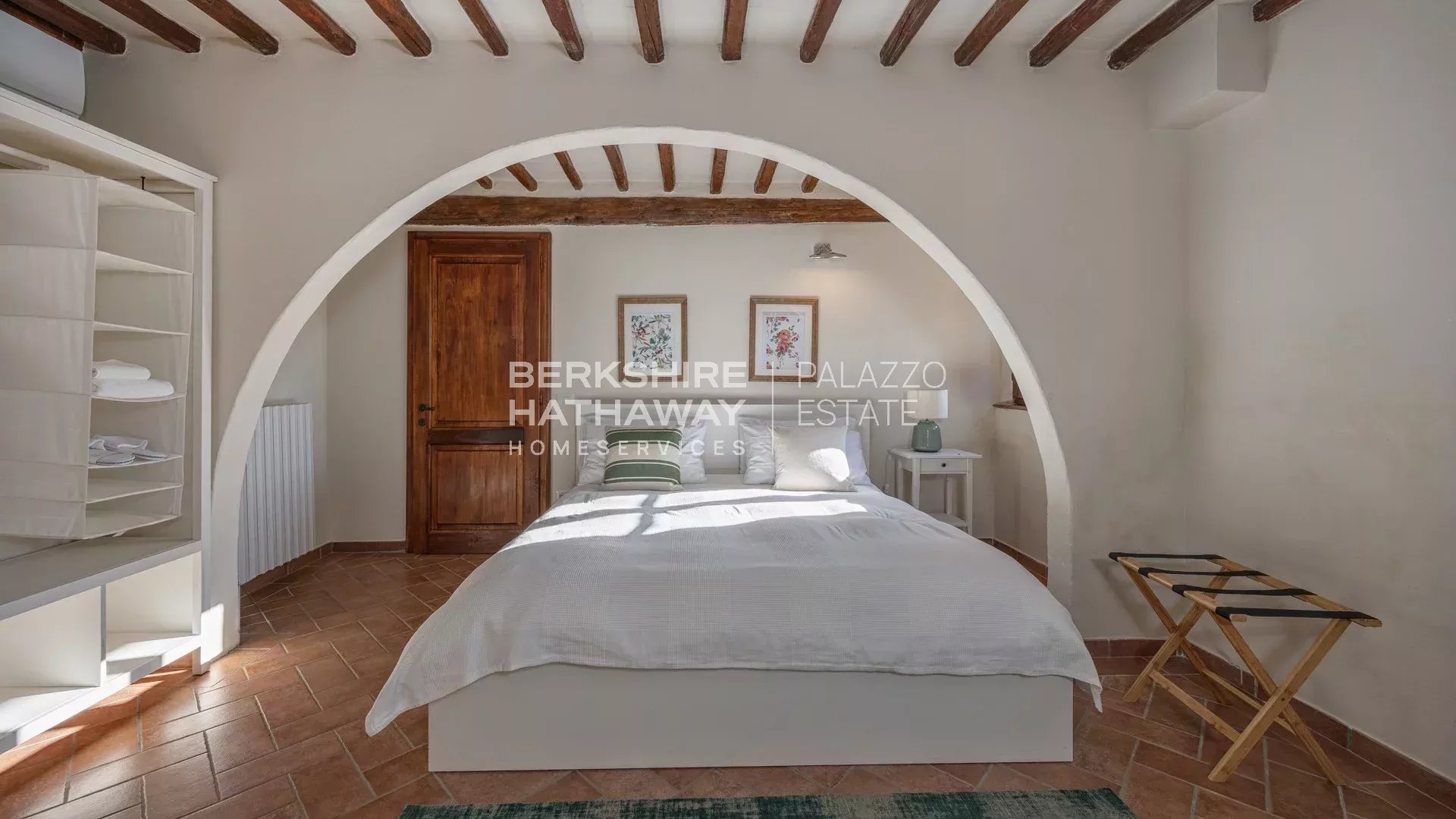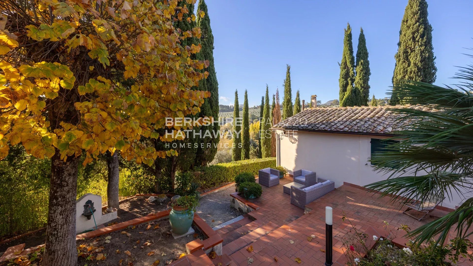 Questa splendida dimora, raggiungibile attraverso una suggestiva breve strada bianca incorniciata dai tipici cipressi toscani, vanta una posizione dominante e molto panoramica con una magnifica vista su Montepulciano.