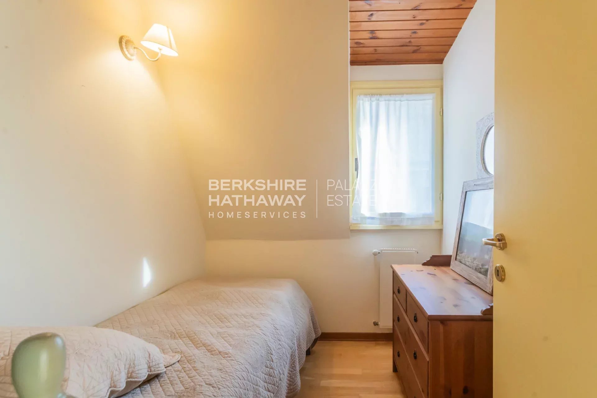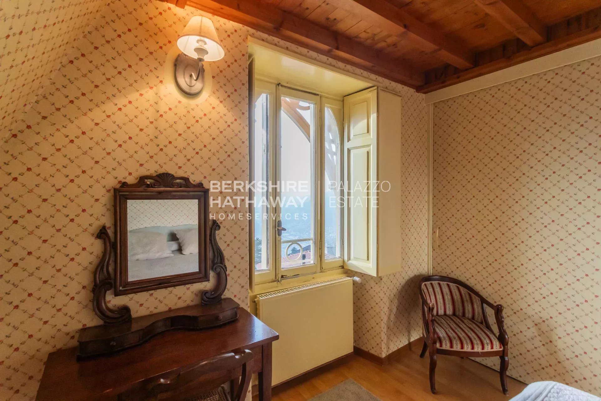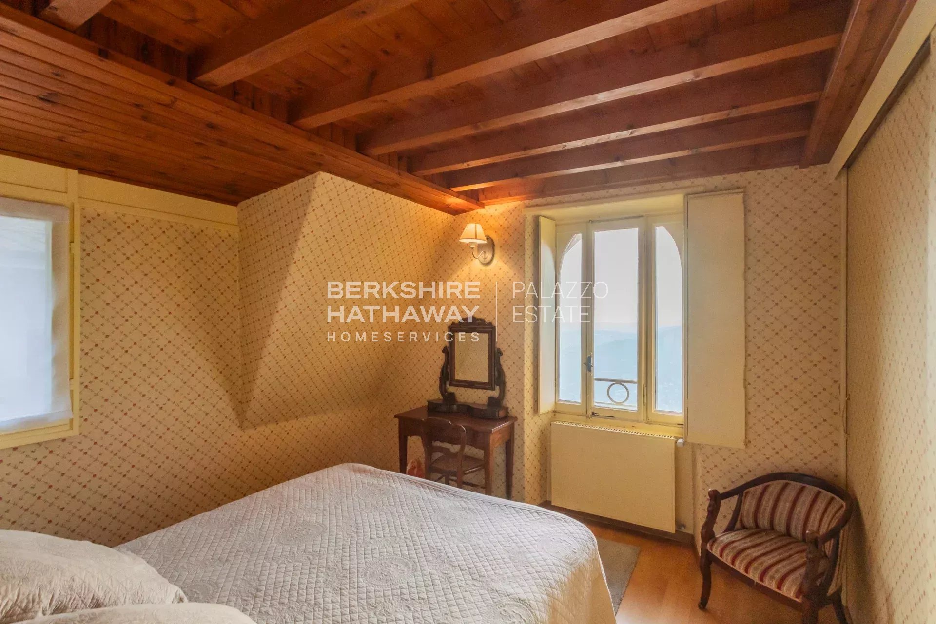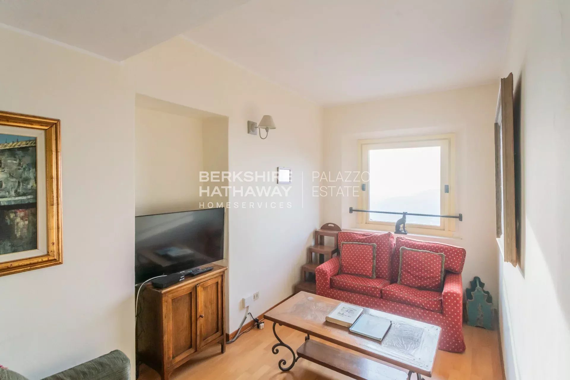 All’ultimo livello, all’interno della caratteristica torretta, è stato realizzato un appartamento indipendente composto da soggiorno, cucinino, una camera da letto e un bagno. Da questo livello si accede a una terrazza privata che offre una prospettiva ampia sul lago di Como e sul paesaggio alpino. La proprietà dispone inoltre di quattro posti auto.