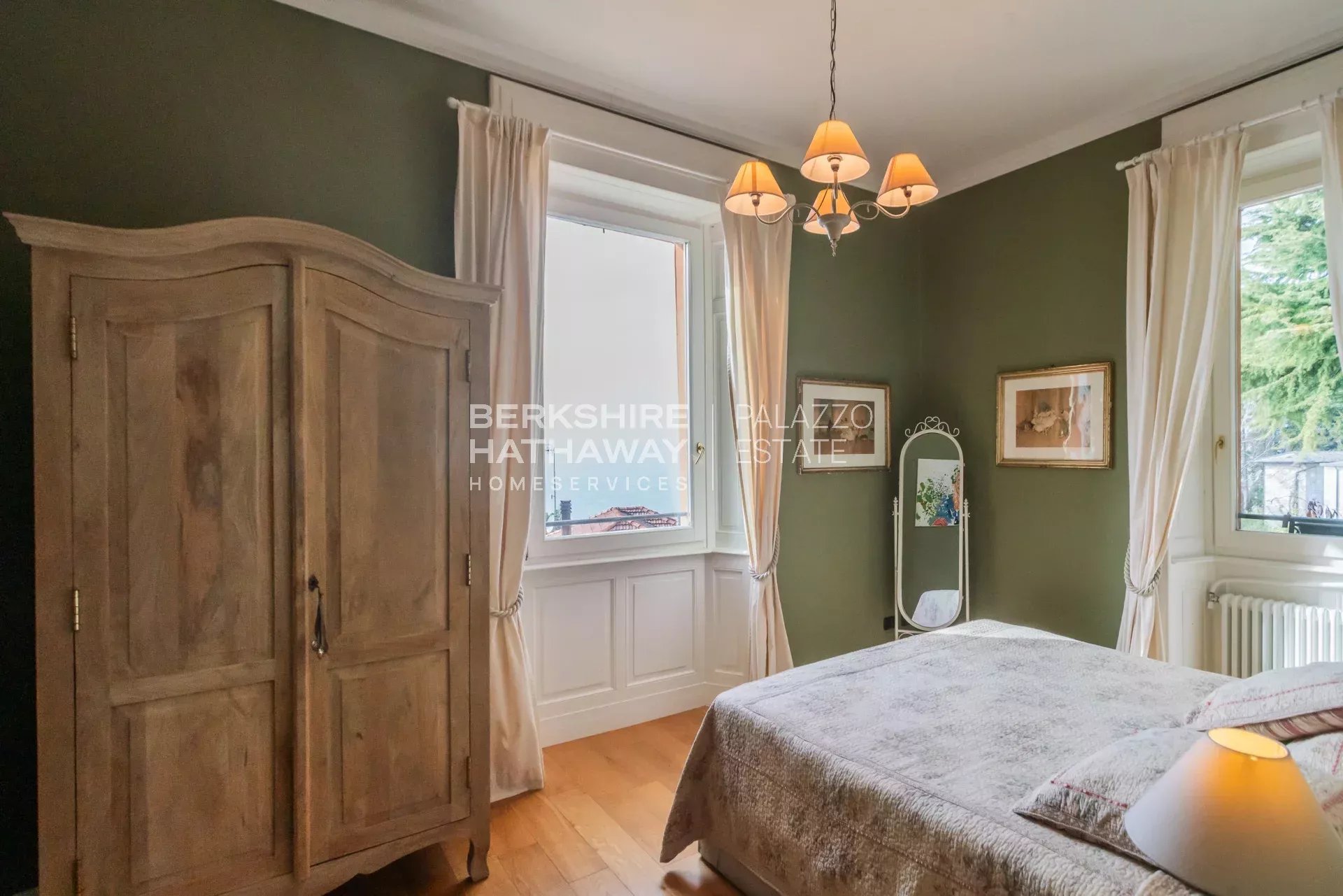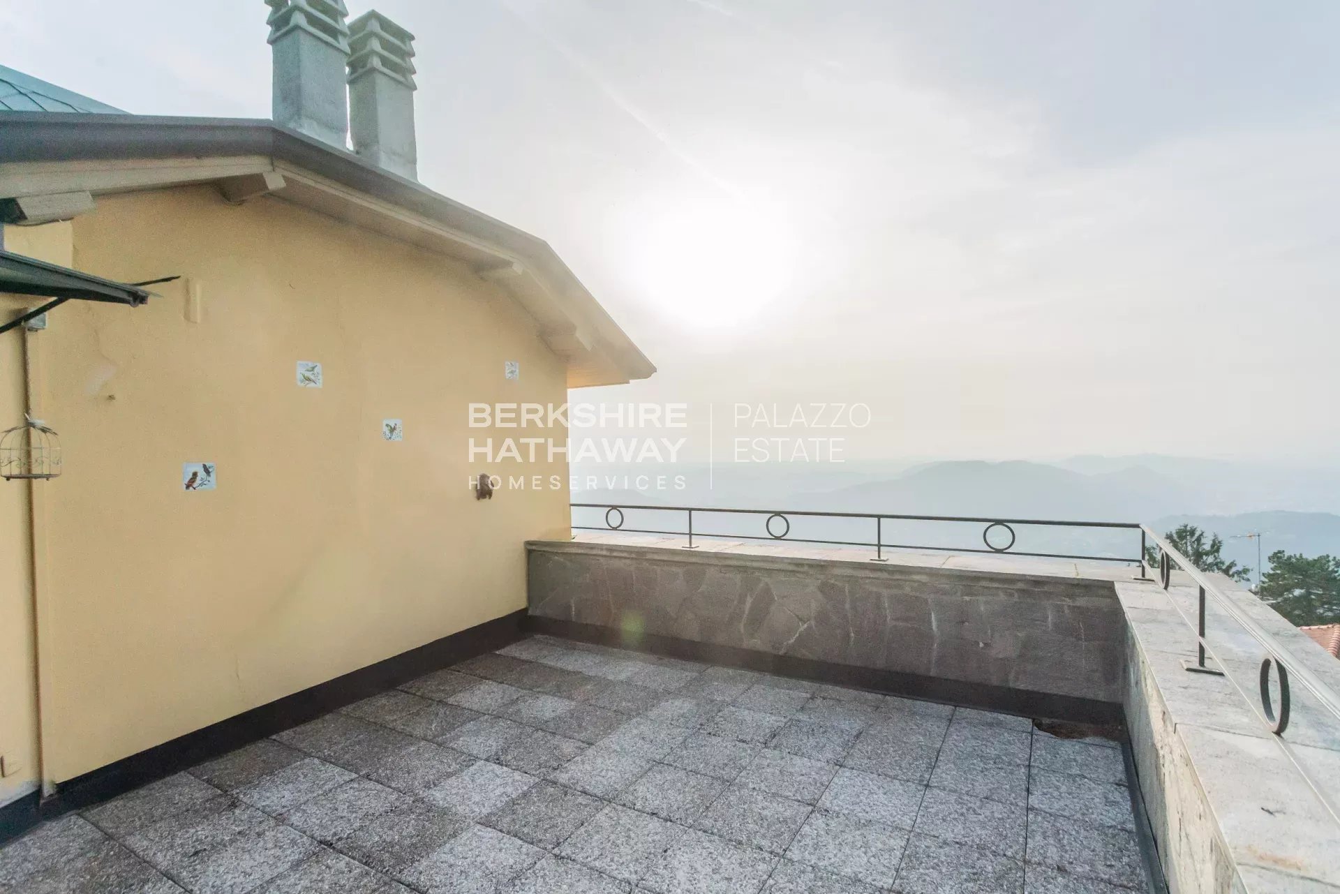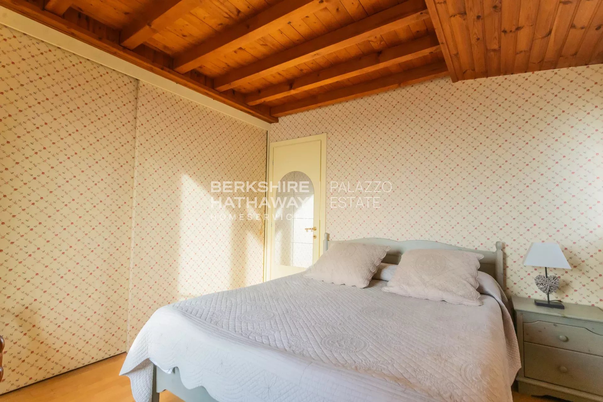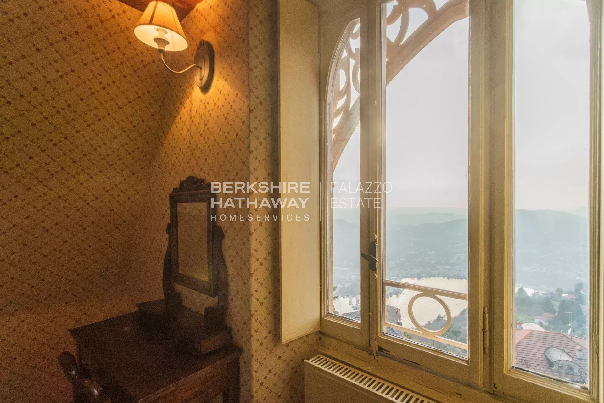All’ultimo livello, all’interno della caratteristica torretta, è stato realizzato un appartamento indipendente composto da soggiorno, cucinino, una camera da letto e un bagno. Da questo livello si accede a una terrazza privata che offre una prospettiva ampia sul lago di Como e sul paesaggio alpino. La proprietà dispone inoltre di quattro posti auto.