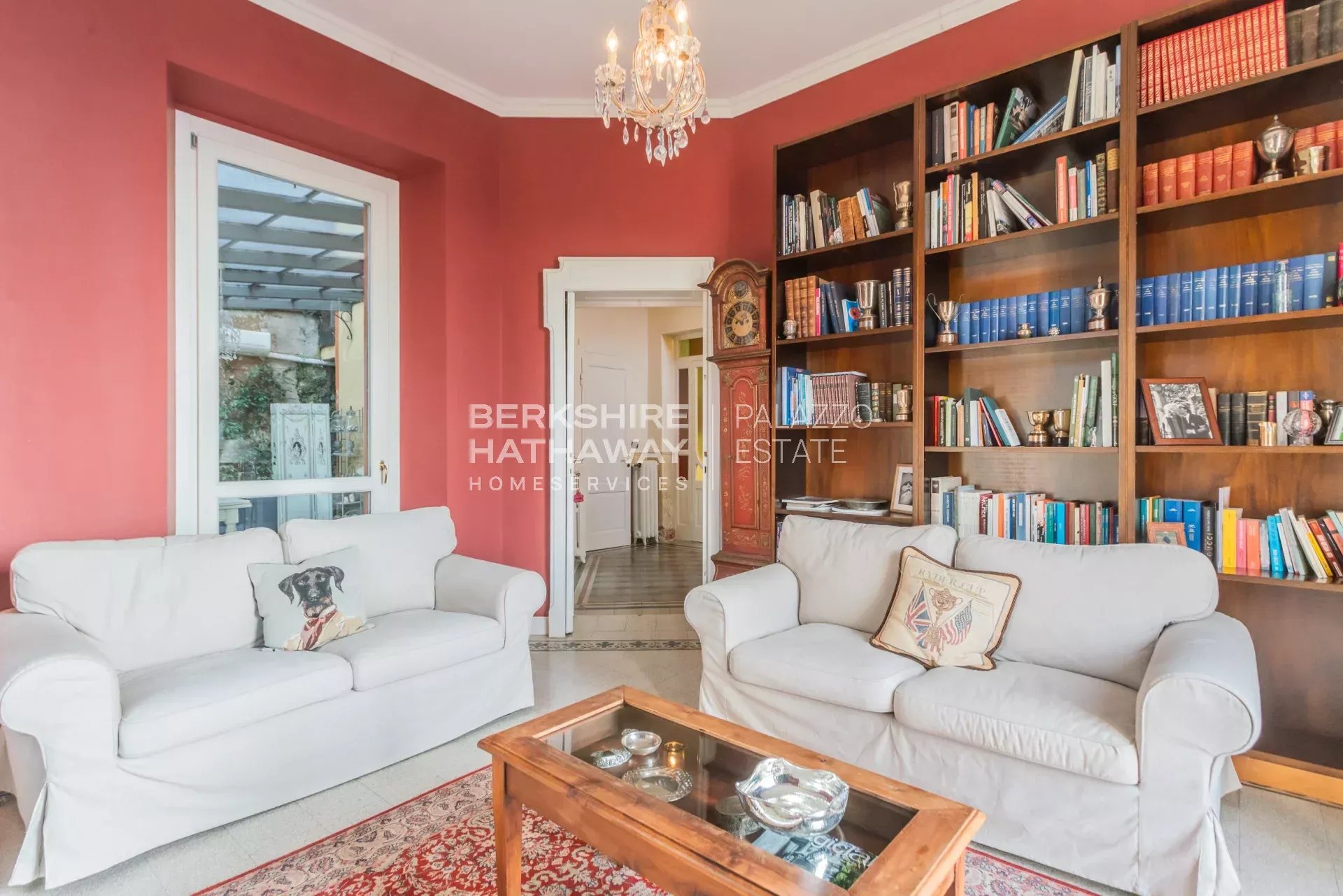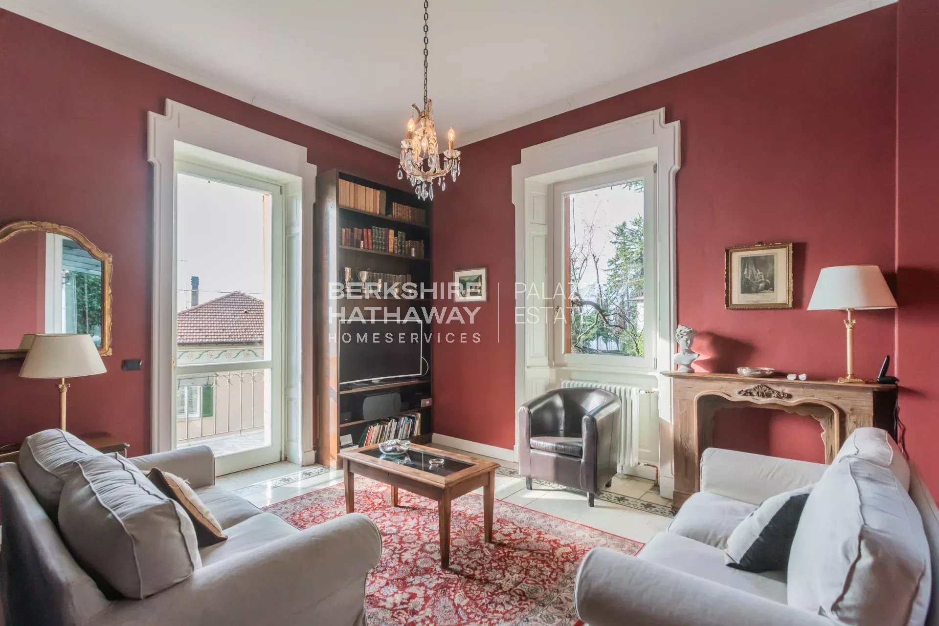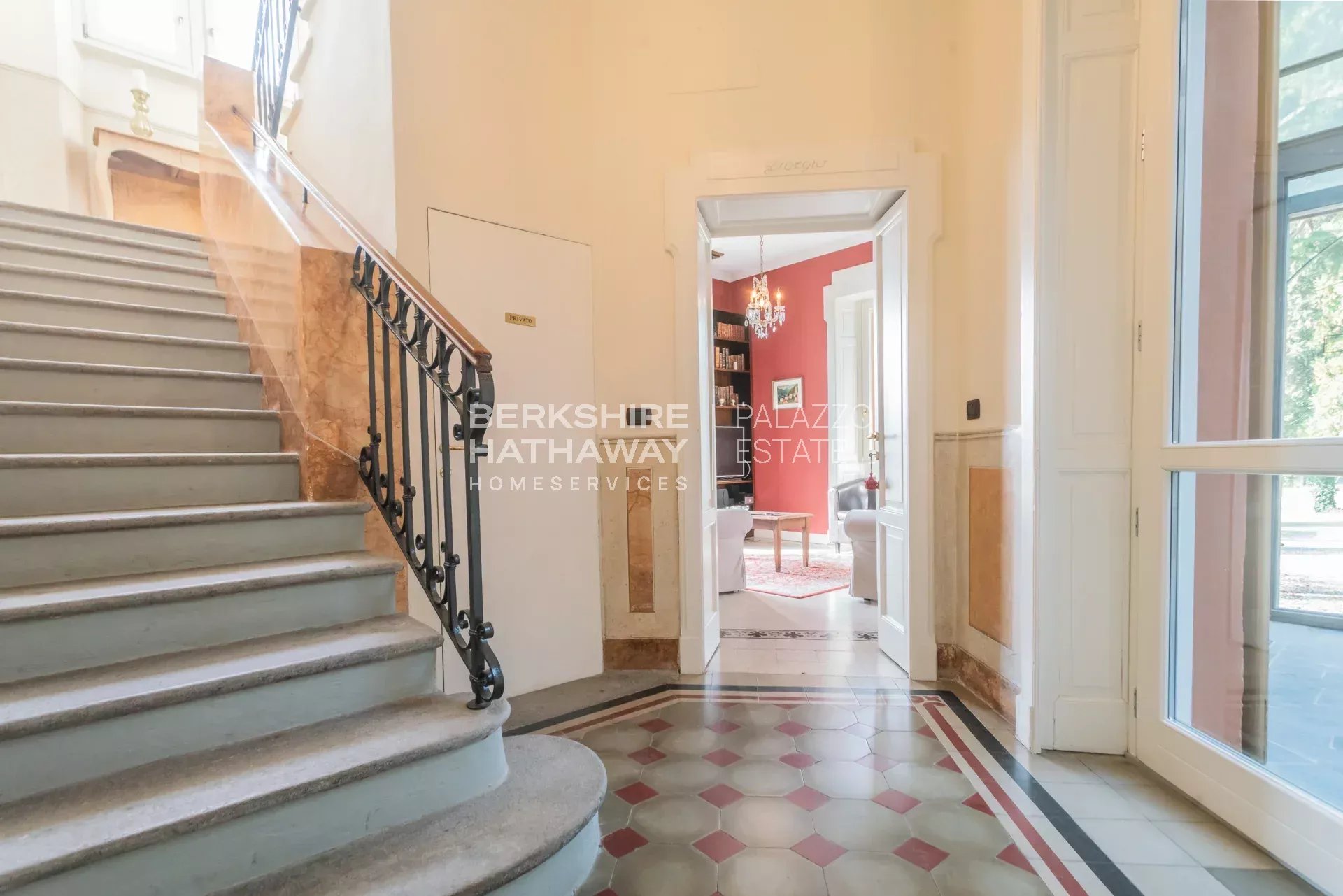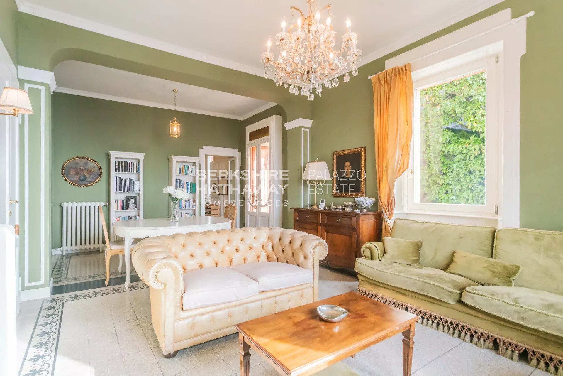 La villa si sviluppa su tre livelli principali oltre a un piano seminterrato, per una superficie di circa 300 mq. Un intervento di ristrutturazione eseguito circa dieci anni fa ha preservato l’identità storica dell’edificio valorizzandone i dettagli originari, tra cui i soffitti decorati in stucco, la scala in marmo, le decorazioni murarie e diversi serramenti e porte interne d’epoca.