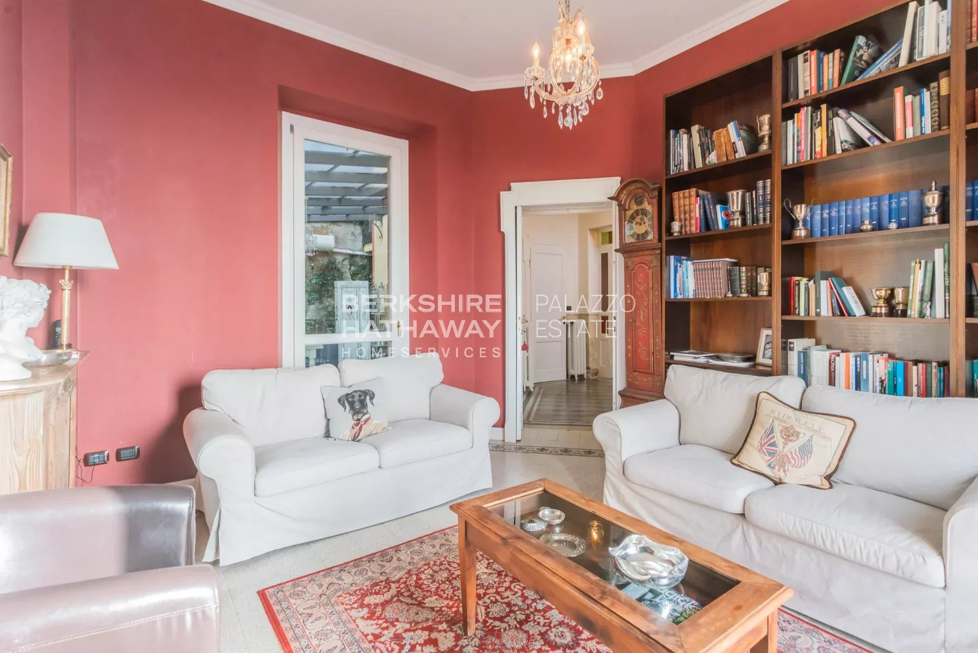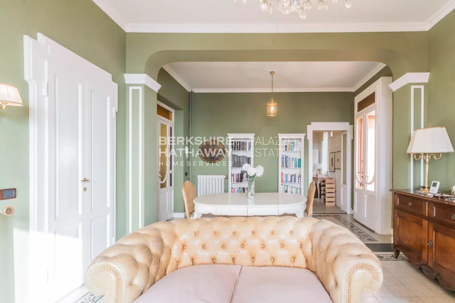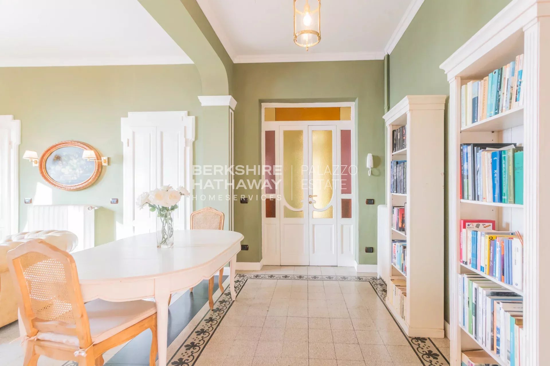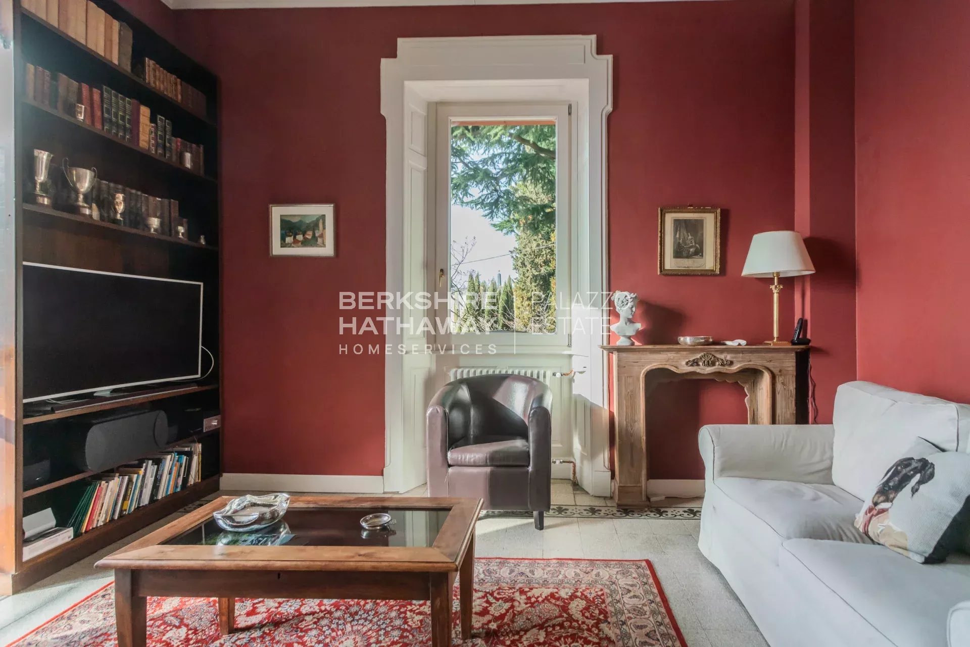 La villa si sviluppa su tre livelli principali oltre a un piano seminterrato, per una superficie di circa 300 mq. Un intervento di ristrutturazione eseguito circa dieci anni fa ha preservato l’identità storica dell’edificio valorizzandone i dettagli originari, tra cui i soffitti decorati in stucco, la scala in marmo, le decorazioni murarie e diversi serramenti e porte interne d’epoca.