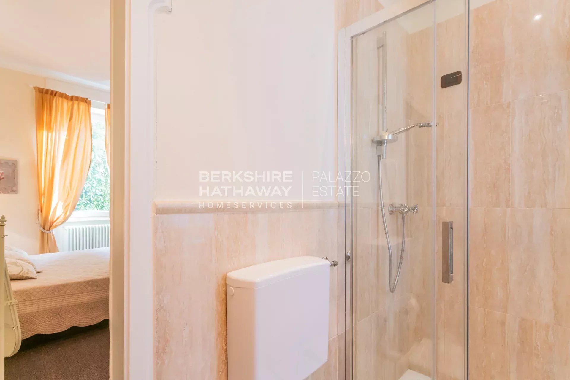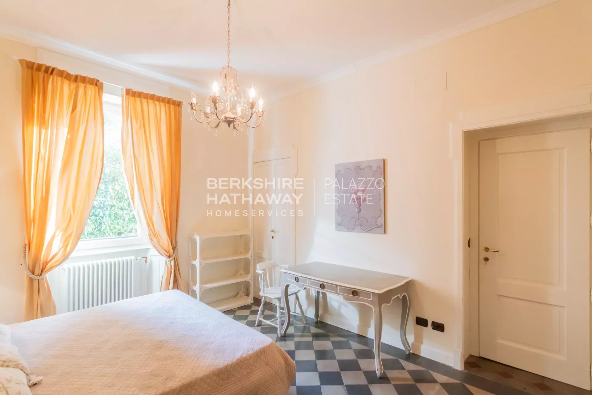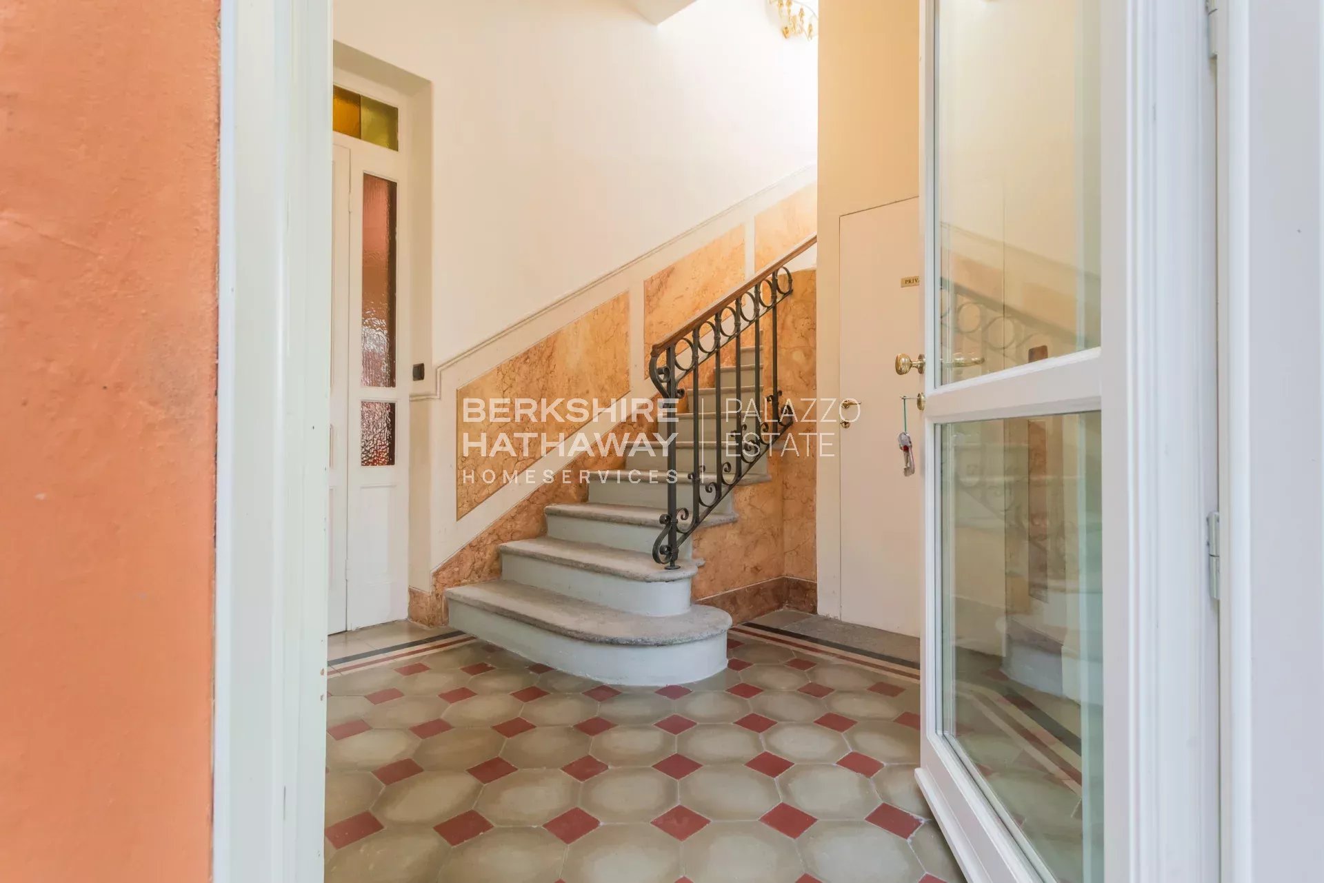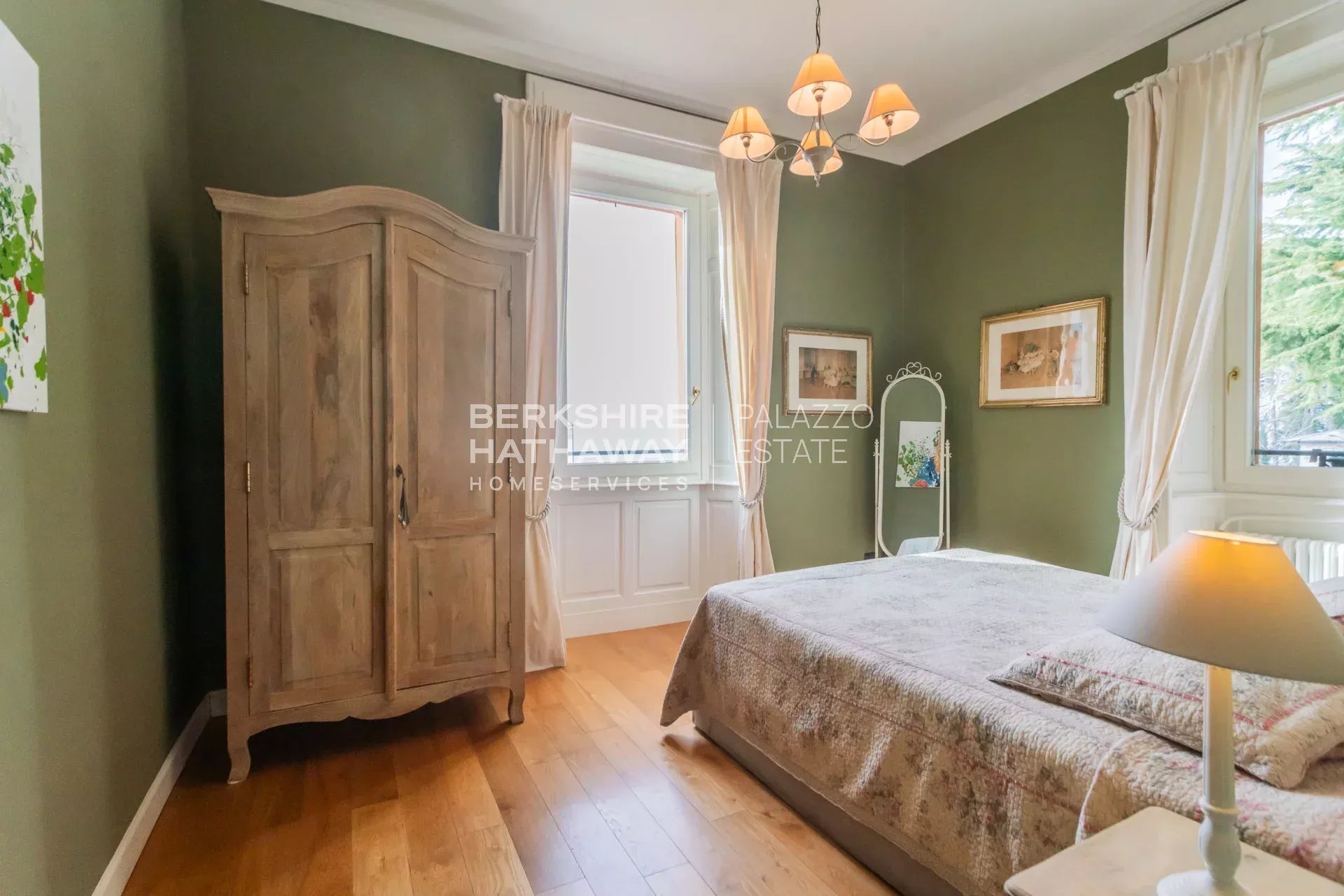 La villa si sviluppa su tre livelli principali oltre a un piano seminterrato, per una superficie di circa 300 mq. Un intervento di ristrutturazione eseguito circa dieci anni fa ha preservato l’identità storica dell’edificio valorizzandone i dettagli originari, tra cui i soffitti decorati in stucco, la scala in marmo, le decorazioni murarie e diversi serramenti e porte interne d’epoca.