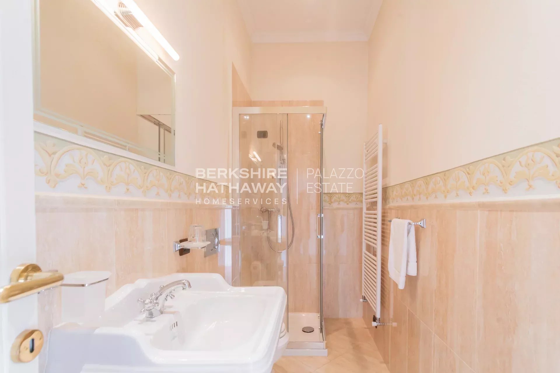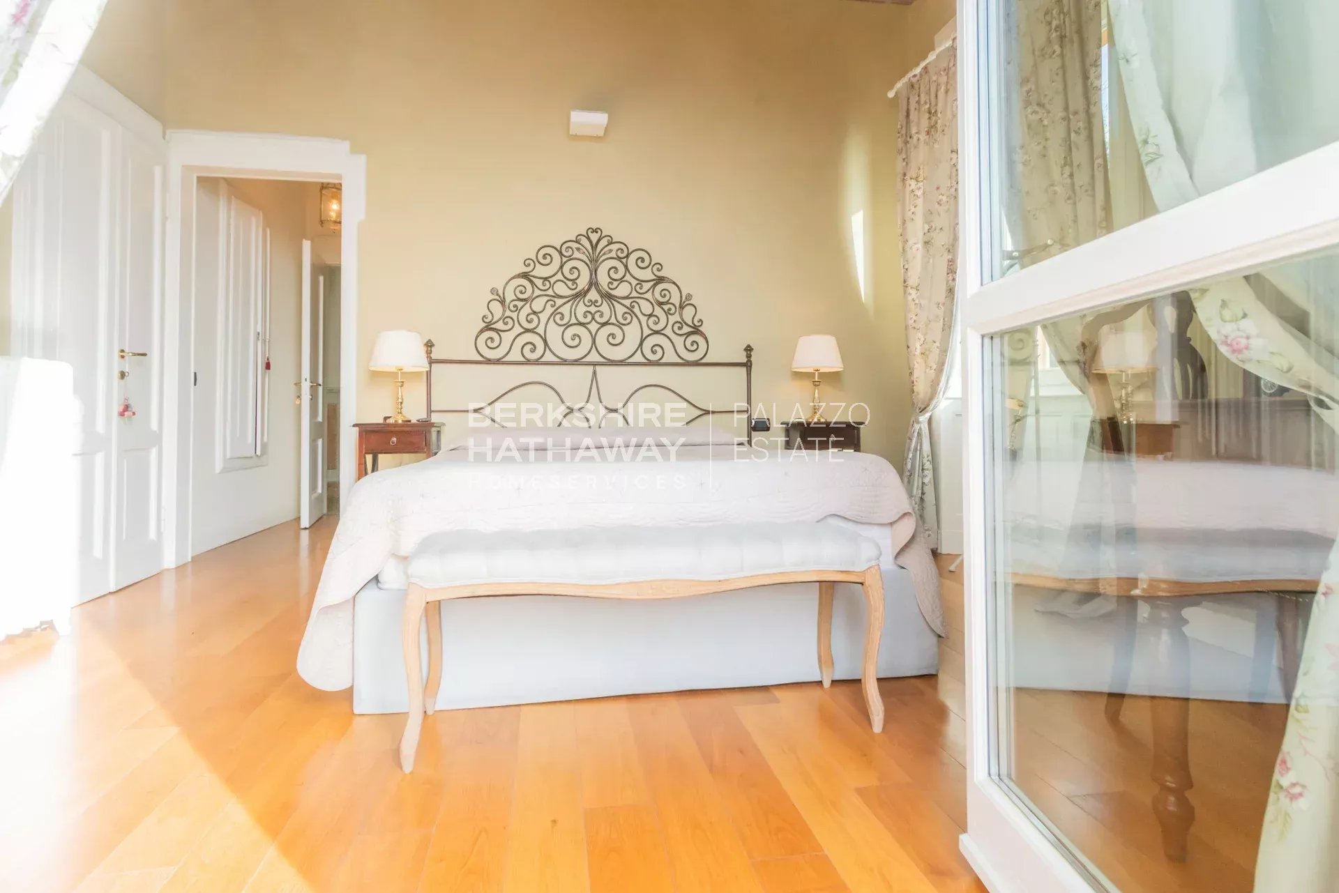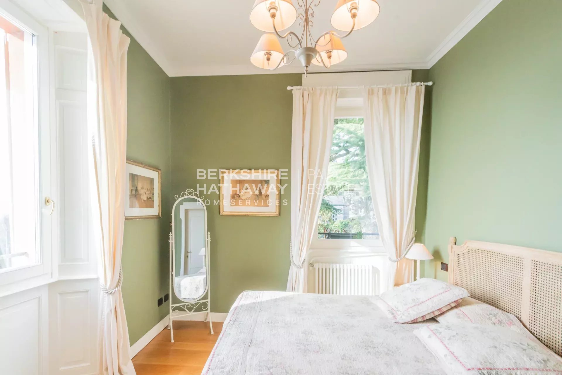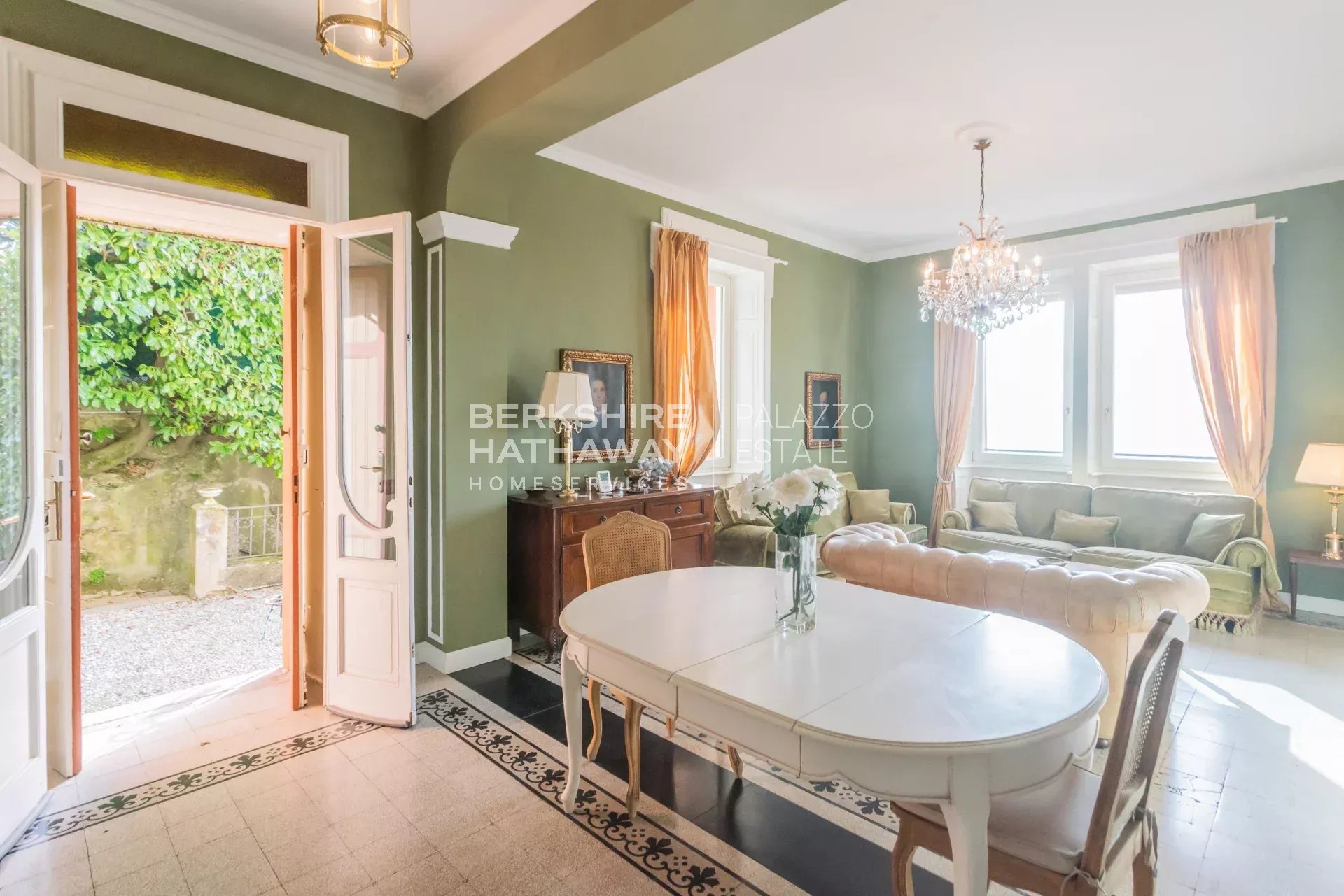 La villa si sviluppa su tre livelli principali oltre a un piano seminterrato, per una superficie di circa 300 mq. Un intervento di ristrutturazione eseguito circa dieci anni fa ha preservato l’identità storica dell’edificio valorizzandone i dettagli originari, tra cui i soffitti decorati in stucco, la scala in marmo, le decorazioni murarie e diversi serramenti e porte interne d’epoca.